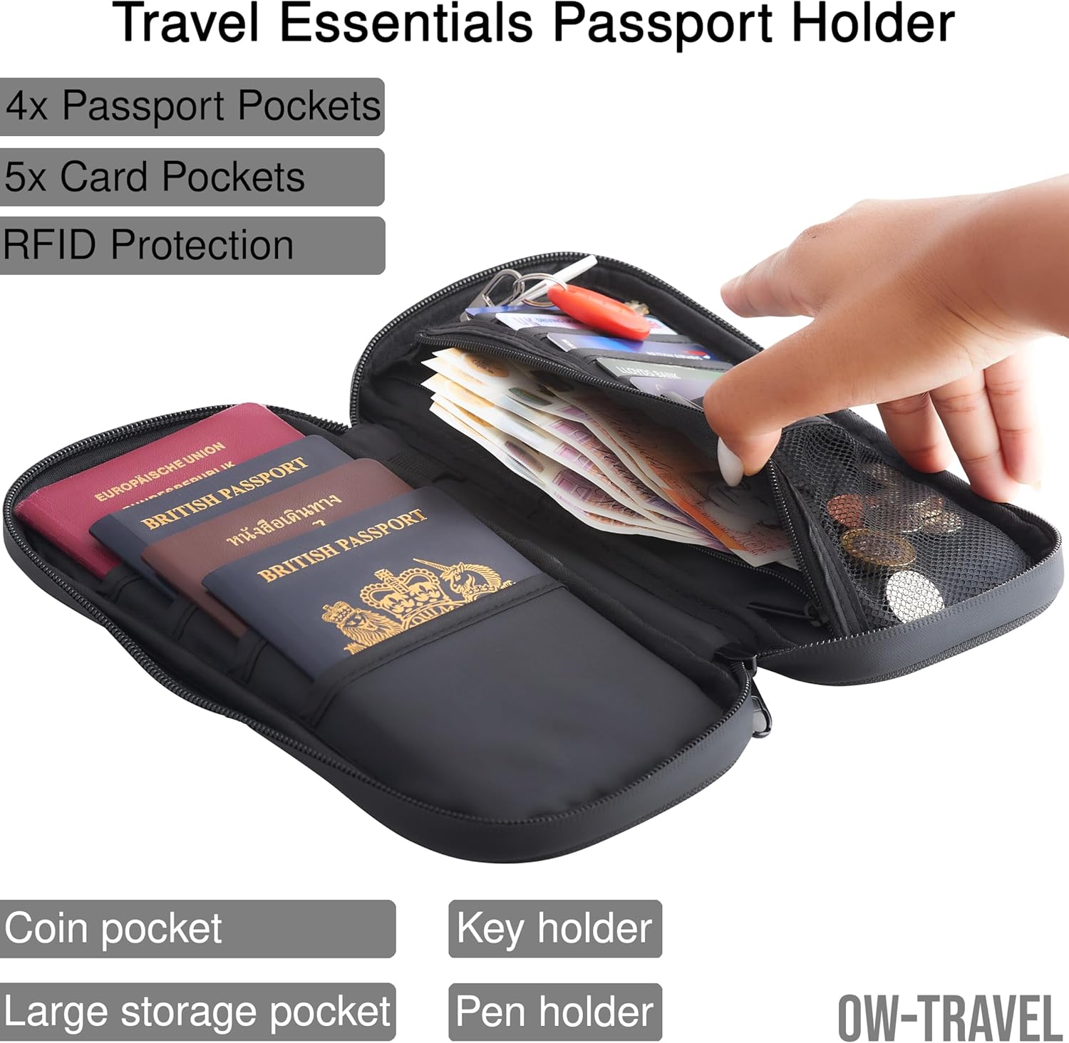 【OW-TRAVEL Making Travel Simpler, Better and More Fun】What You Get: OW-Travel's black passport wallets arrive in a gift-ready box. The OW-Travel passport holders make an ideal travel wallet for women, as well as travel wallet for men. With 4 passport pockets it is well suited as passport holder travel wallet family 4 people. With RFID protection it acts as a faraday wallet/security wallet, a vigilant protector of your family travel wallet, ensuring your personal information stays safe.