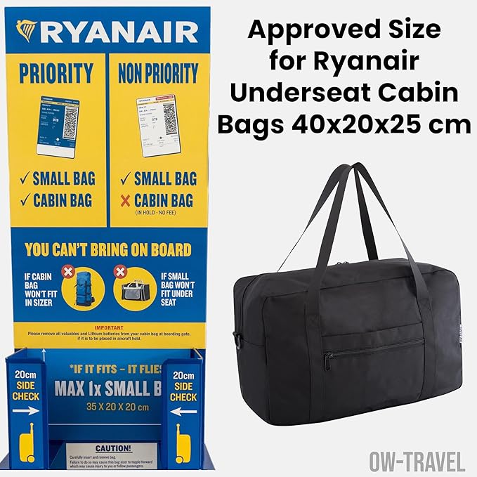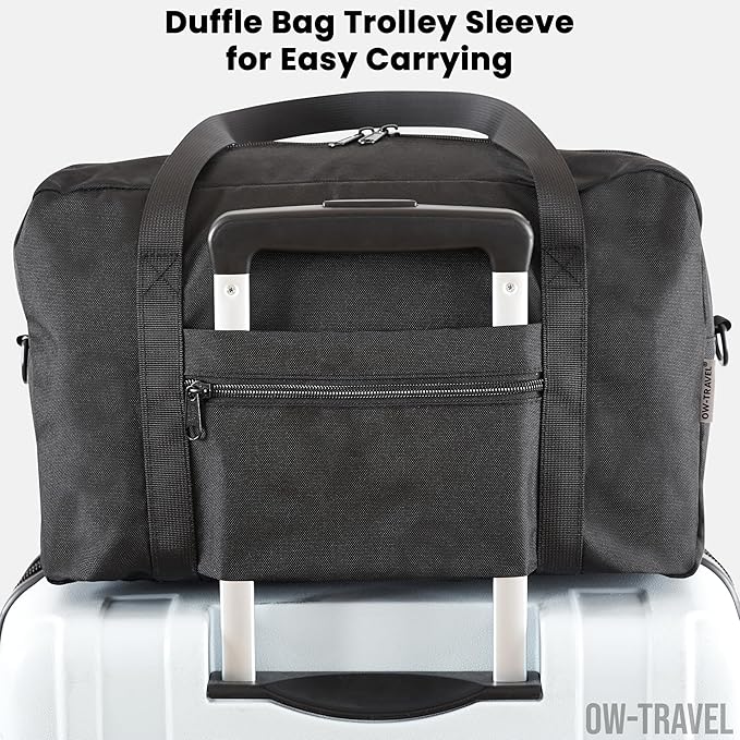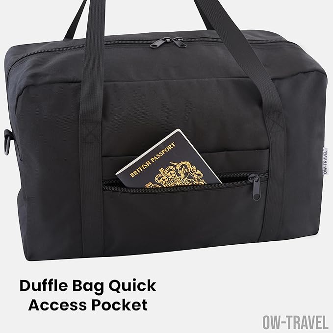 【OW-TRAVEL Making Travel Simpler, Better and More Fun】What You Get: The OW-Travel black duffle bag. This lightweight and durable RyanAir bag is more than a Ryan Air bag 40x20x25 cm. It is the ideal companion for both men and women on any journey. Its spacious design offers plenty of room for all your travel essentials. The functional design makes it an ideal overnight bag, hospital bag or weekend bag. Built for style and convenience this duffle bag ensures you are ready for any adventure.
