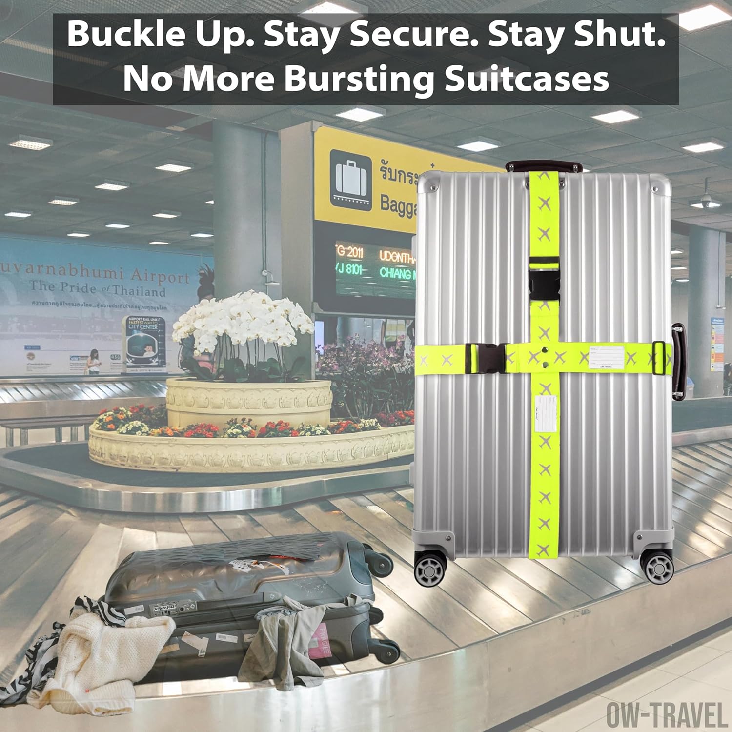 【Easy To Spot Suitcase Straps】 These bright blue and yellow case straps mean luggage is easy to identify on the Conveyor Belt Carousel. At the same time they prevent suitcases from bursting open and showering your belongings everywhere.