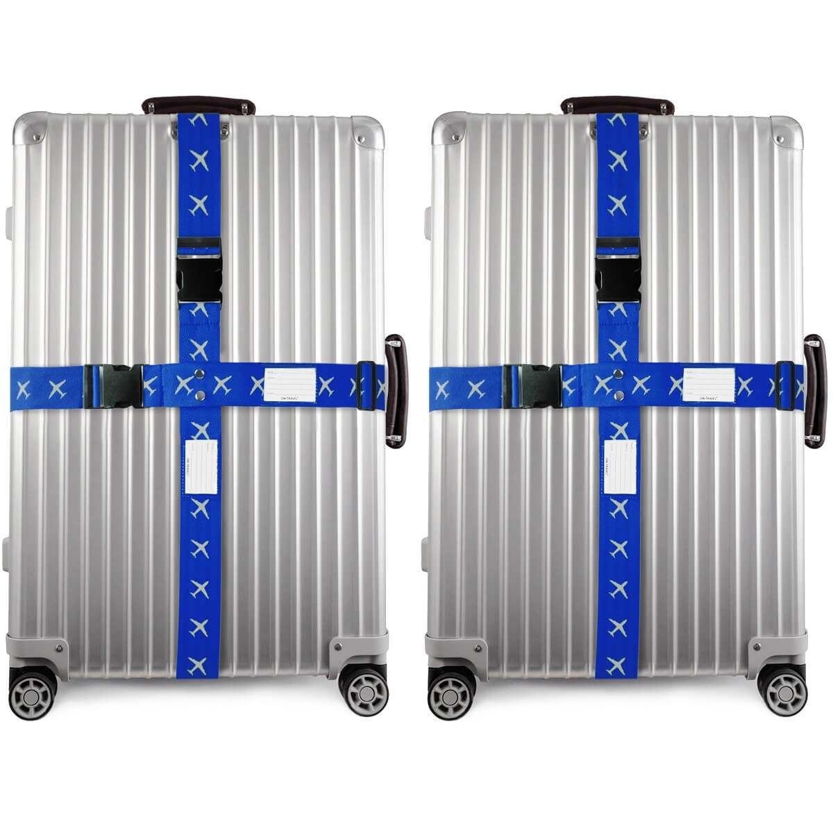 Bright blue luggage cross strap suitcase belts with baggage label tag