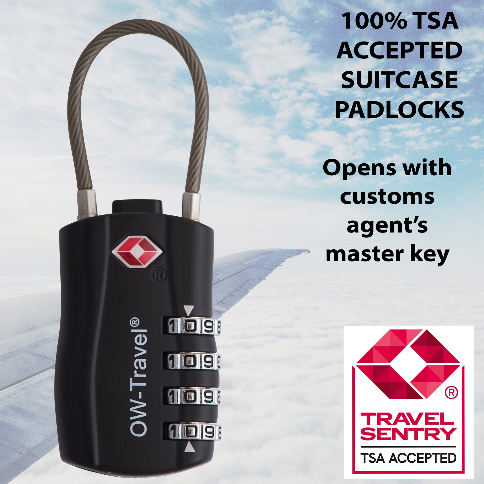 【TSA Approved】 TSA Accepted, Travel Sentry Approved - TSA 007 Master Key Compliant. Fly and never arrive with luggage destroyed by inspectors. Most countries have right to open and inspect suitcases or backpacks even if that means damaging them, especially the USA. OW-Travel’s TSA combination padlock with red diamond logo ensures your travel gear can be opened by all TSA security operators.