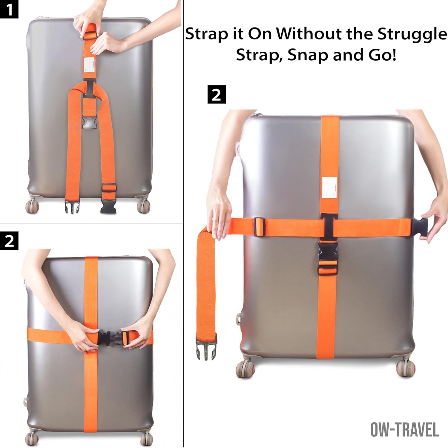 【Strong and Sturdy】 The luggage cross straps are made from super tough polypropylene which is able to resist the stresses of travel. The easily adjustable strap snap buckle strap closure is engineered from super strong ABS.