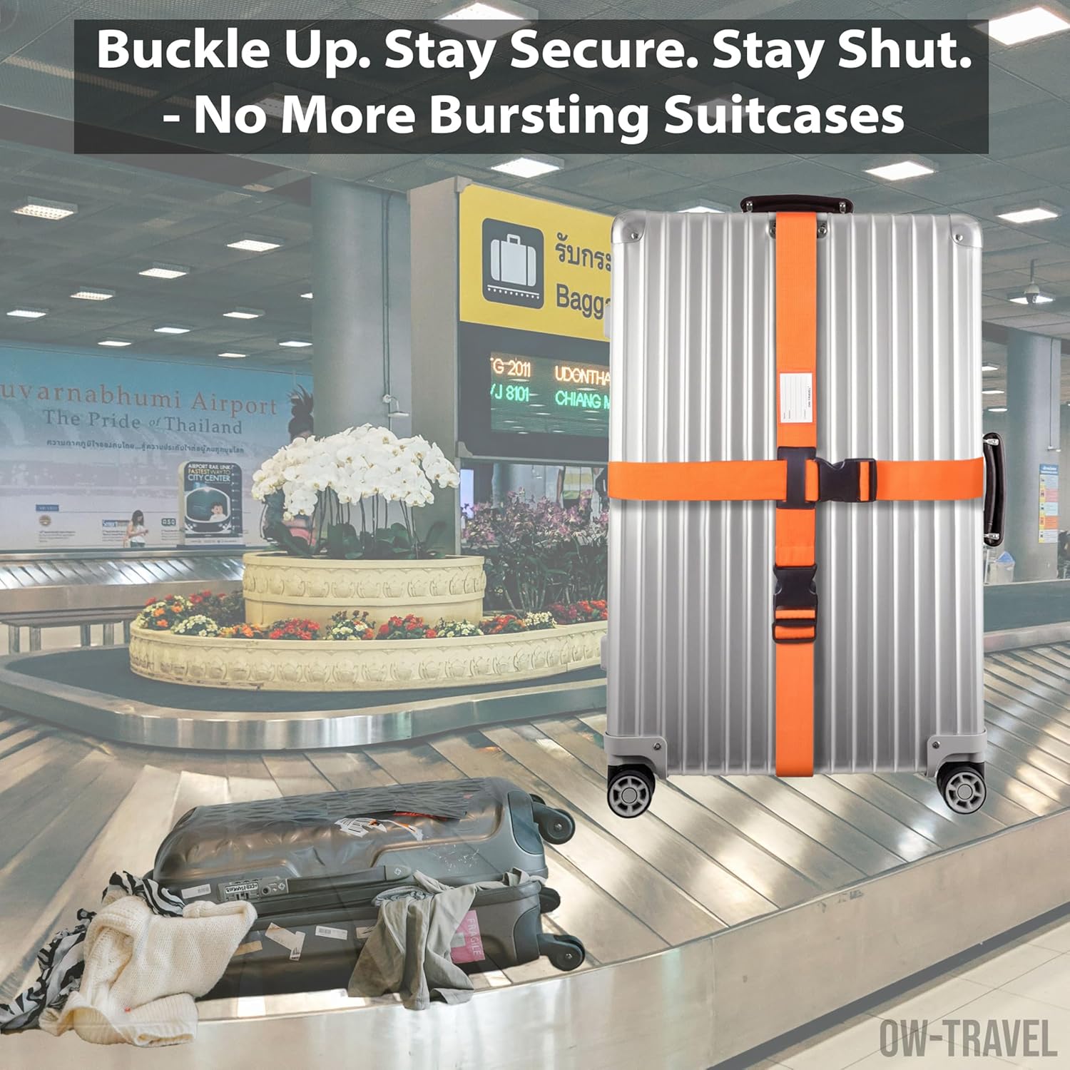 【Easy To Spot Suitcase Straps】 These bright orange case straps mean luggage is easy to identify on the Conveyor Belt Carousel. At the same time they prevent suitcases from bursting open and showering your belongings everywhere.