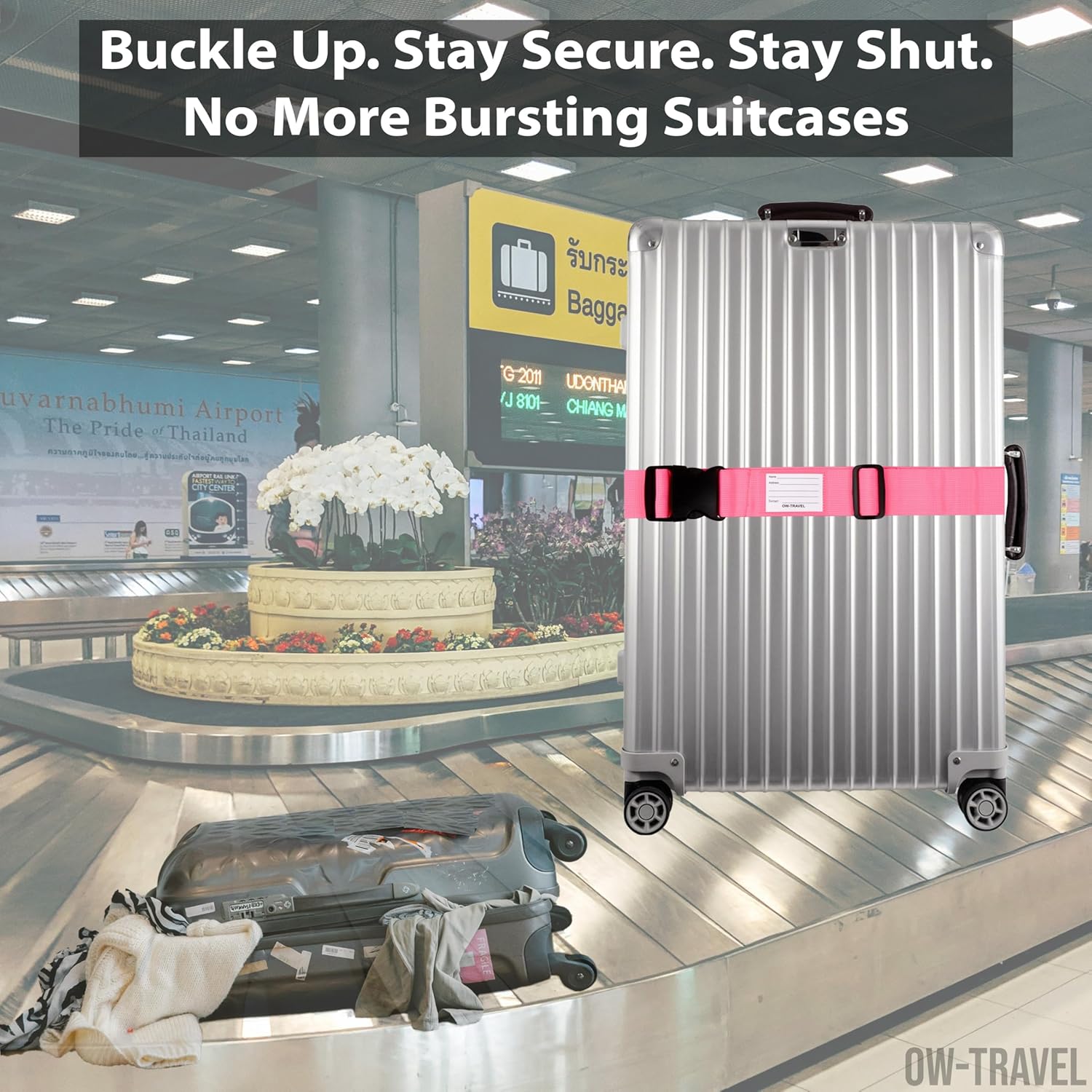 【Easy To Spot Suitcase Straps】 These bright pink case straps mean luggage is easy to identify on the Conveyor Belt Carousel. At the same time they prevent suitcases from bursting open and showering your belongings everywhere.