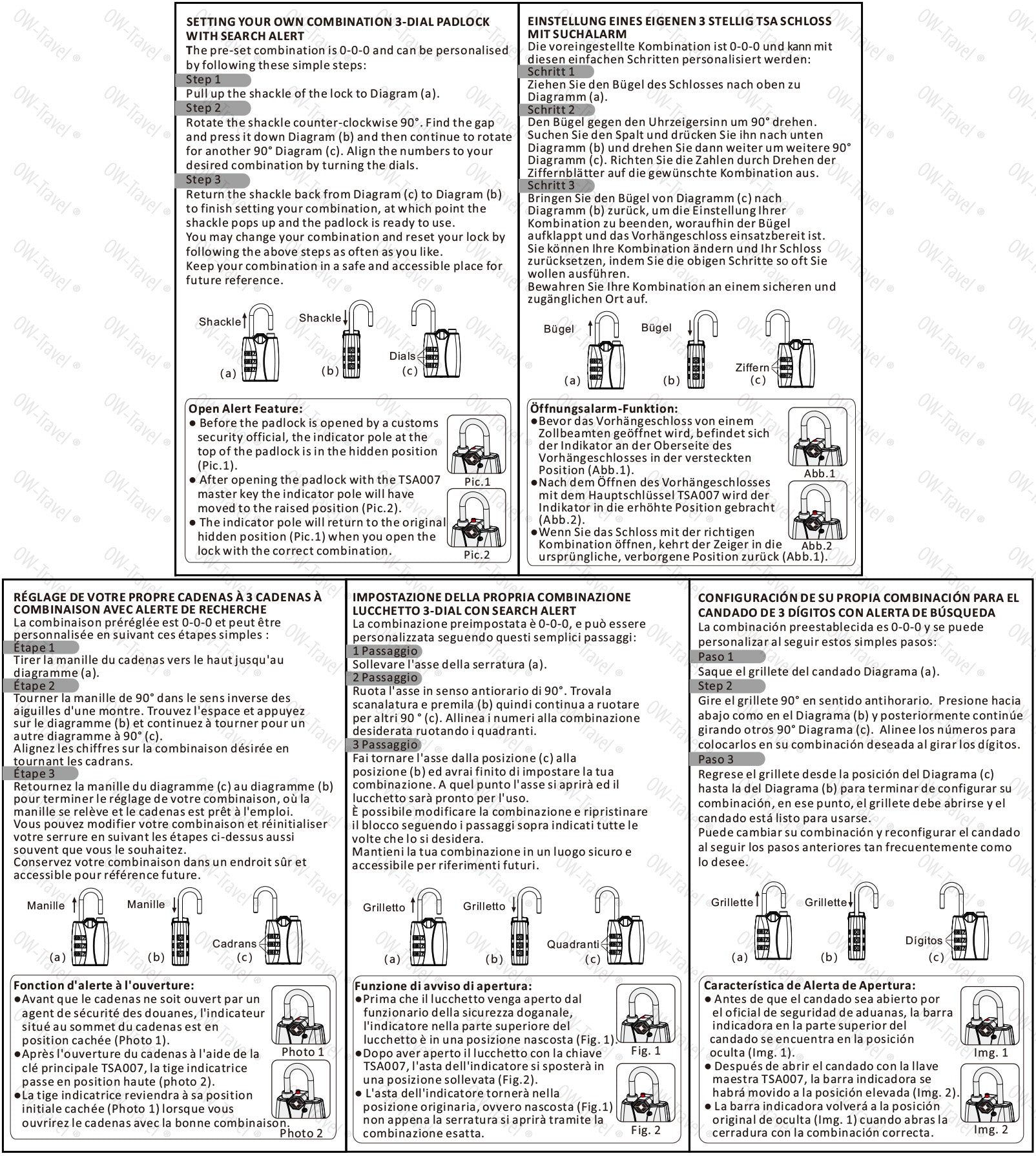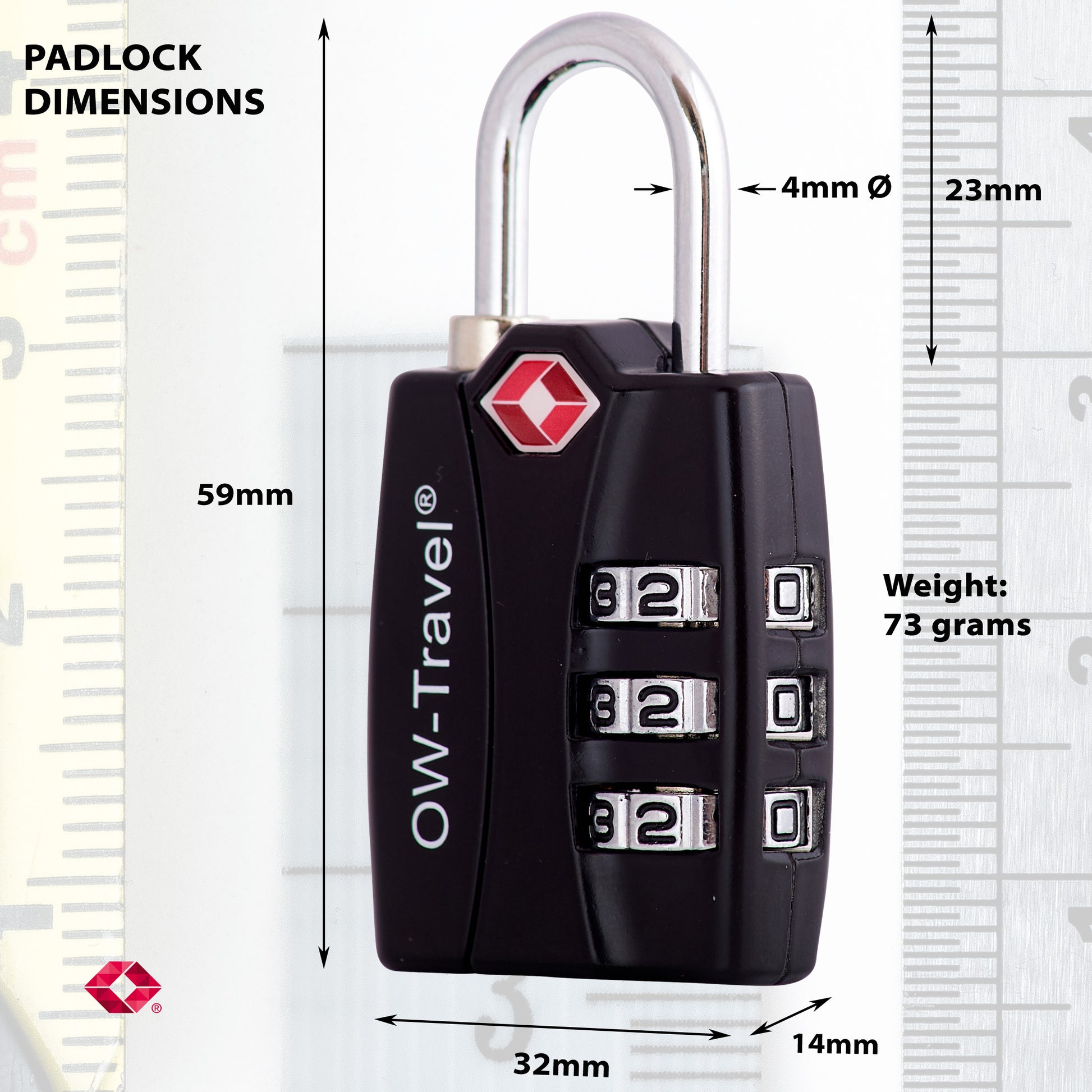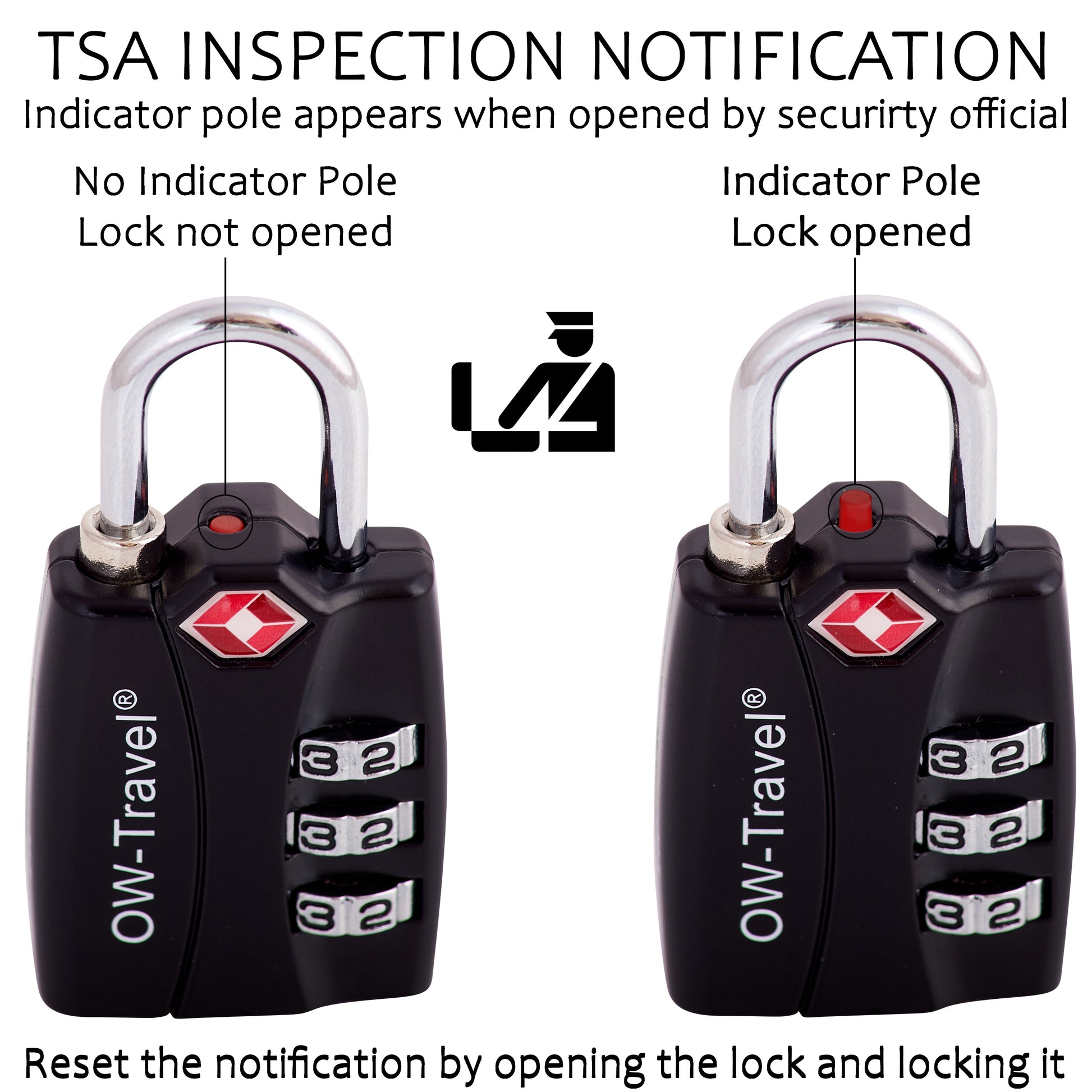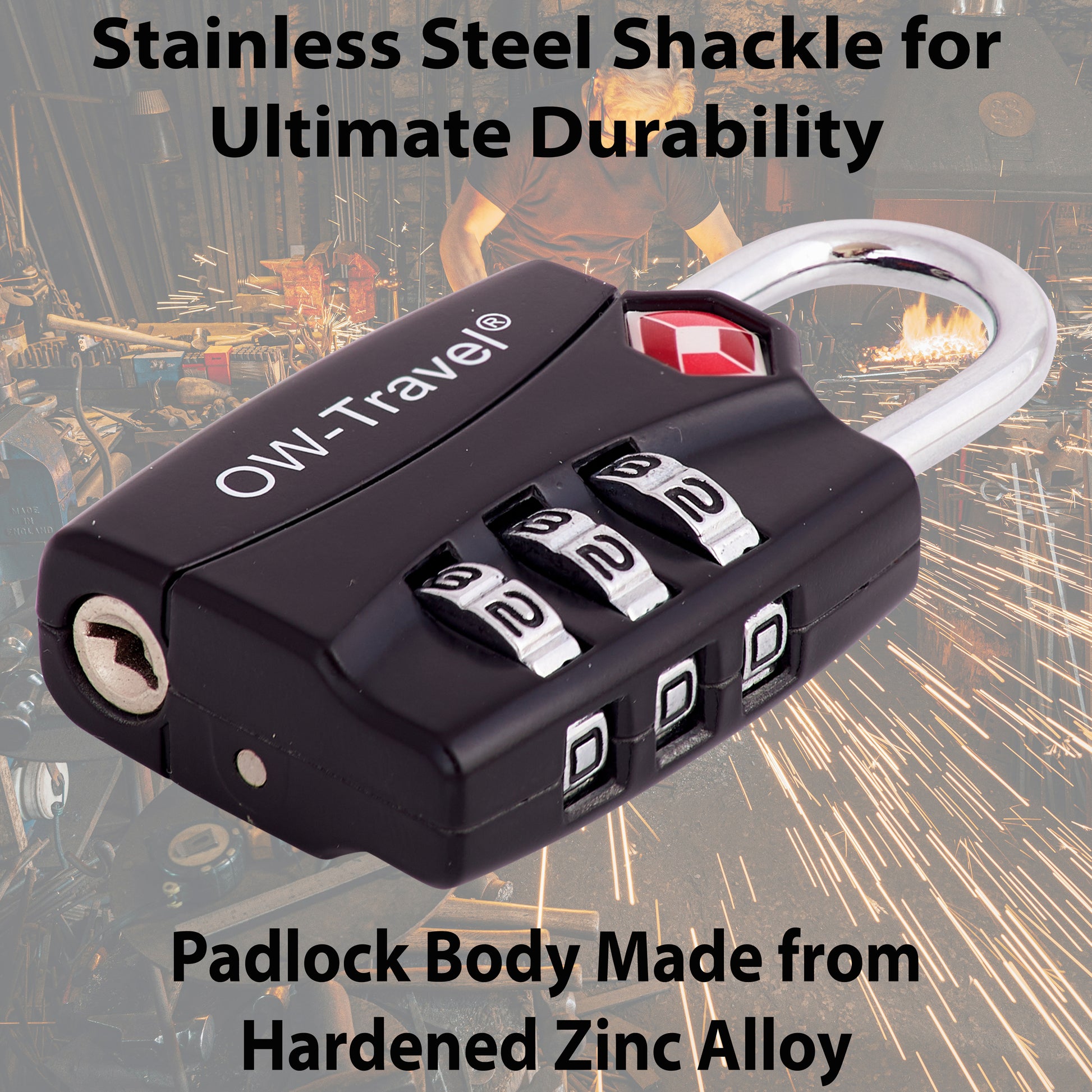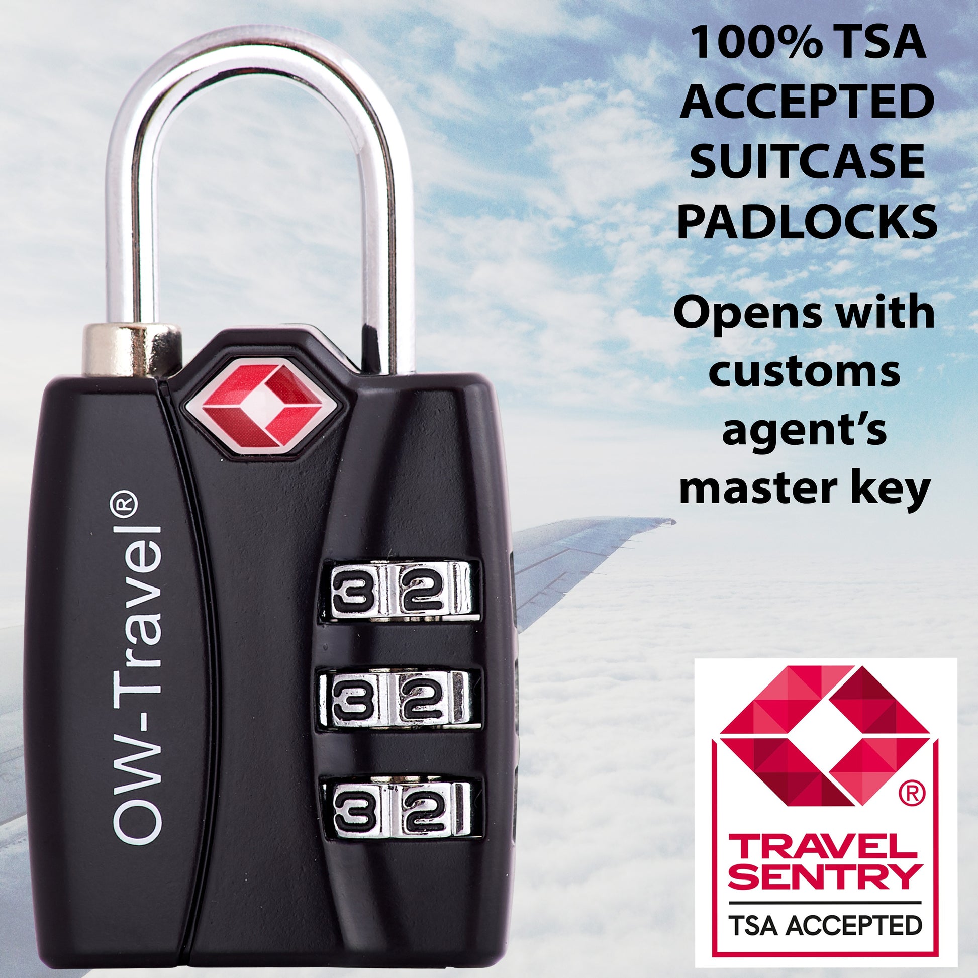 【Durable & Robust】 Secure TSA luggage locks. OW-Travel suitcase locks are crafted from the most Robust Zinc Alloy making it near impossible to cut through or crack using regular tools. Plus the 3 dial numerical pad lock allows you to create over 1,000 combinations, so guessing your combo is almost impossible. A Padlock designed for a suitcase. Double your security system: Unlike ‘copycat’ Number Combination Padlocks that leave you with a false sense of security.