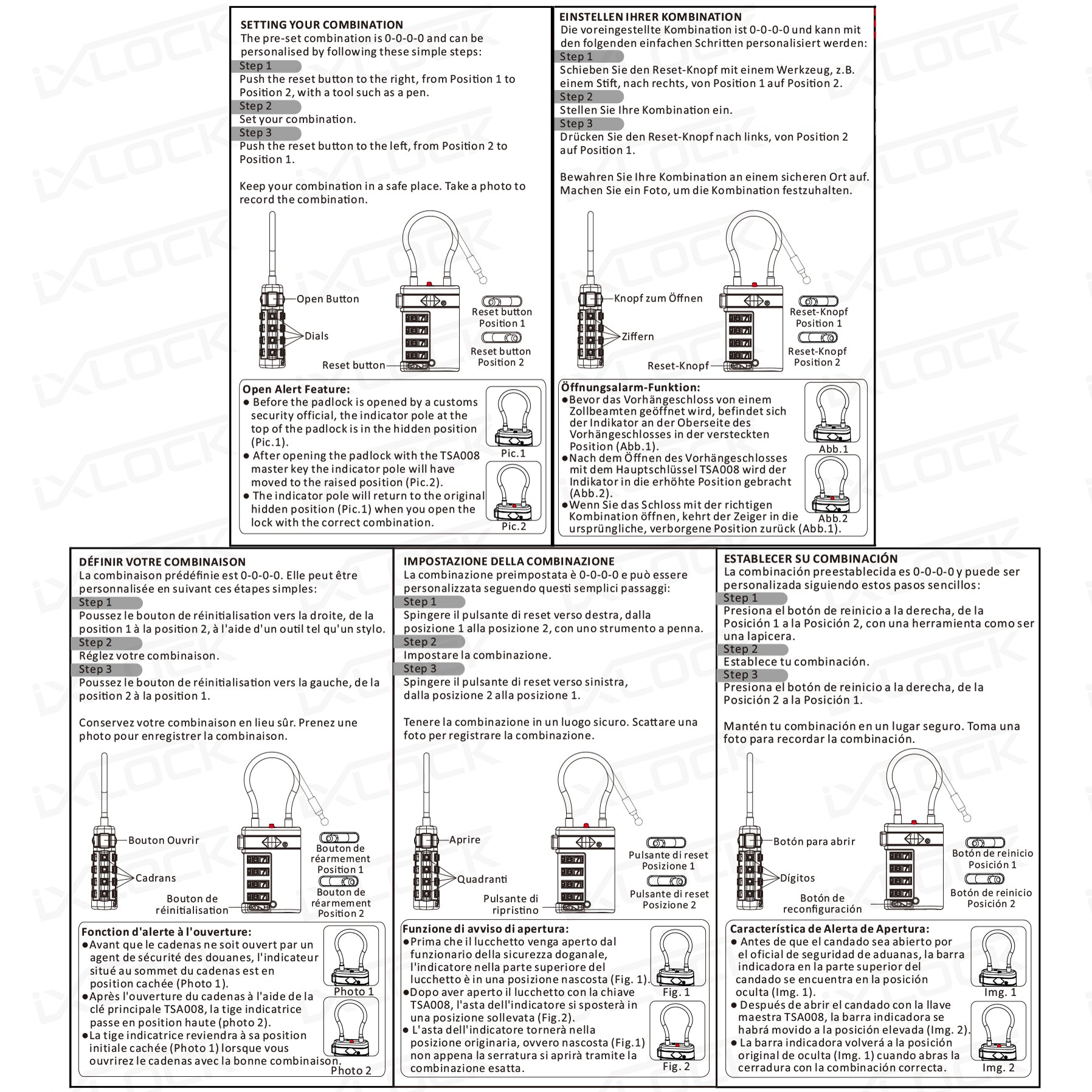 【Easy To Use】Combination padlocks for luggage with solid metal easy move dials. The small white triangle makes reading and setting your combination easy. Quickly reset pass codes in 3 simple steps an 8 year old can follow. Setting the combination requires a ballpoint pen. A TSA travel lock can also be used with airplane carry on cabin hand baggage. A TSA travel padlock with combination is a padlock for travel but can be used around the home. Luggage padlock case padlock keep belongings SAFE