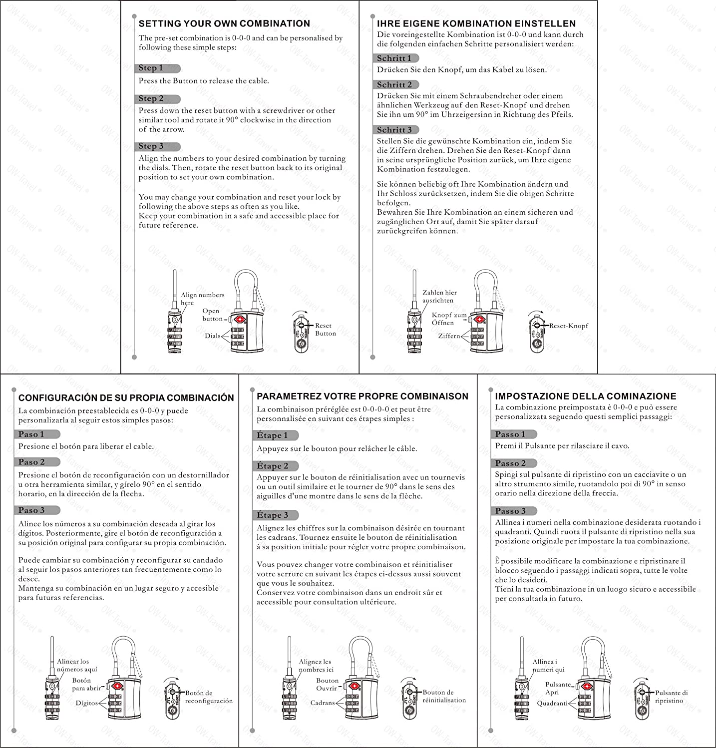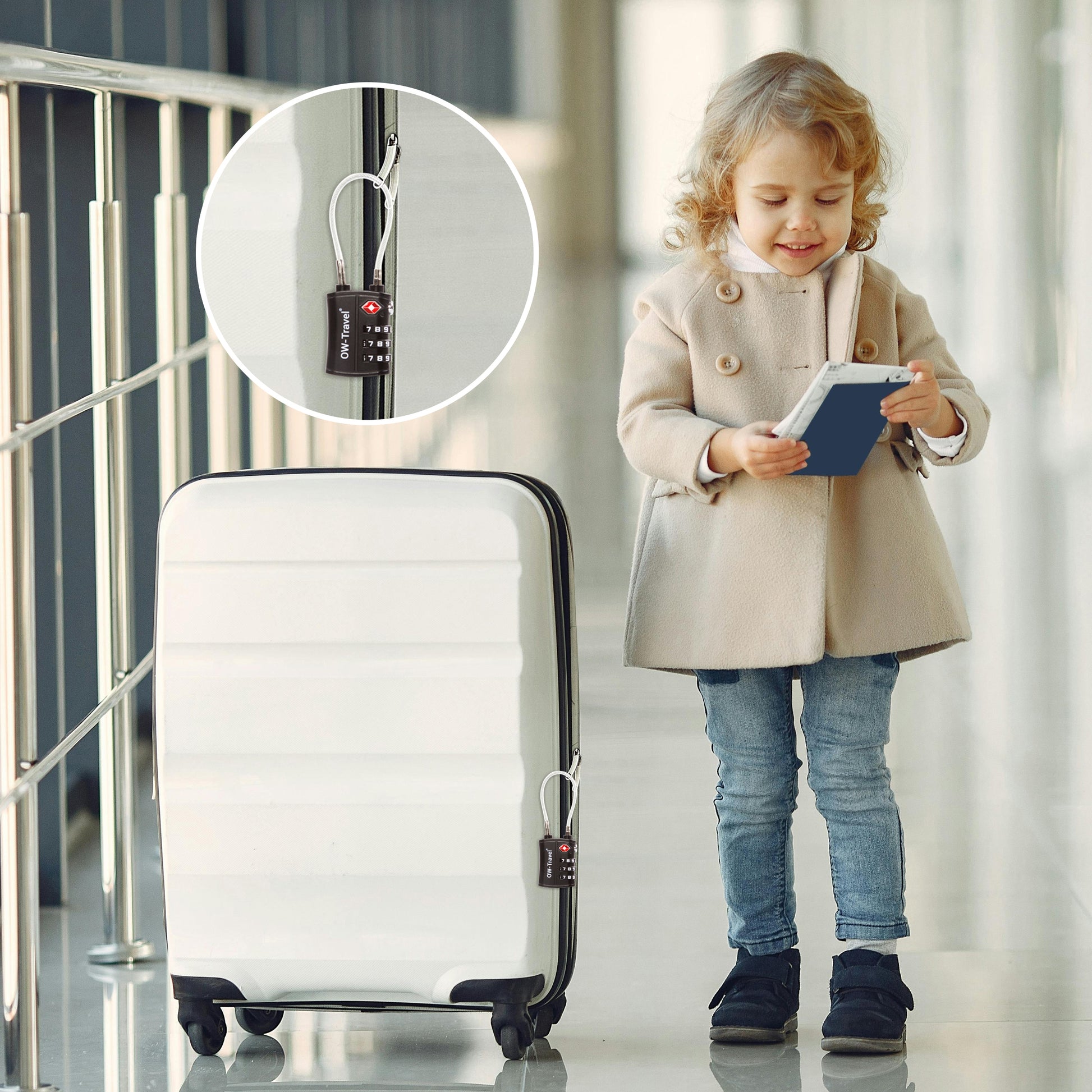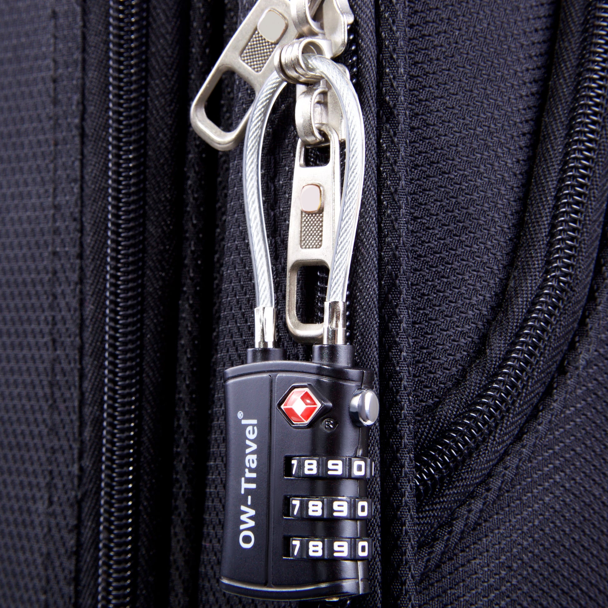 【Durable & Robust】 Secure TSA luggage locks. OW-Travel suitcase locks are crafted from the most Robust Zinc Alloy and come with a toughened plastic coated steel cable making it near impossible to cut through or crack using regular tools. The 3 dial numerical pad lock allows you to create over 1,000 combinations, so guessing the combo is almost impossible. A Padlock designed for a suitcase. Double your security system: Unlike ‘copycat’ Number Combination Padlocks.