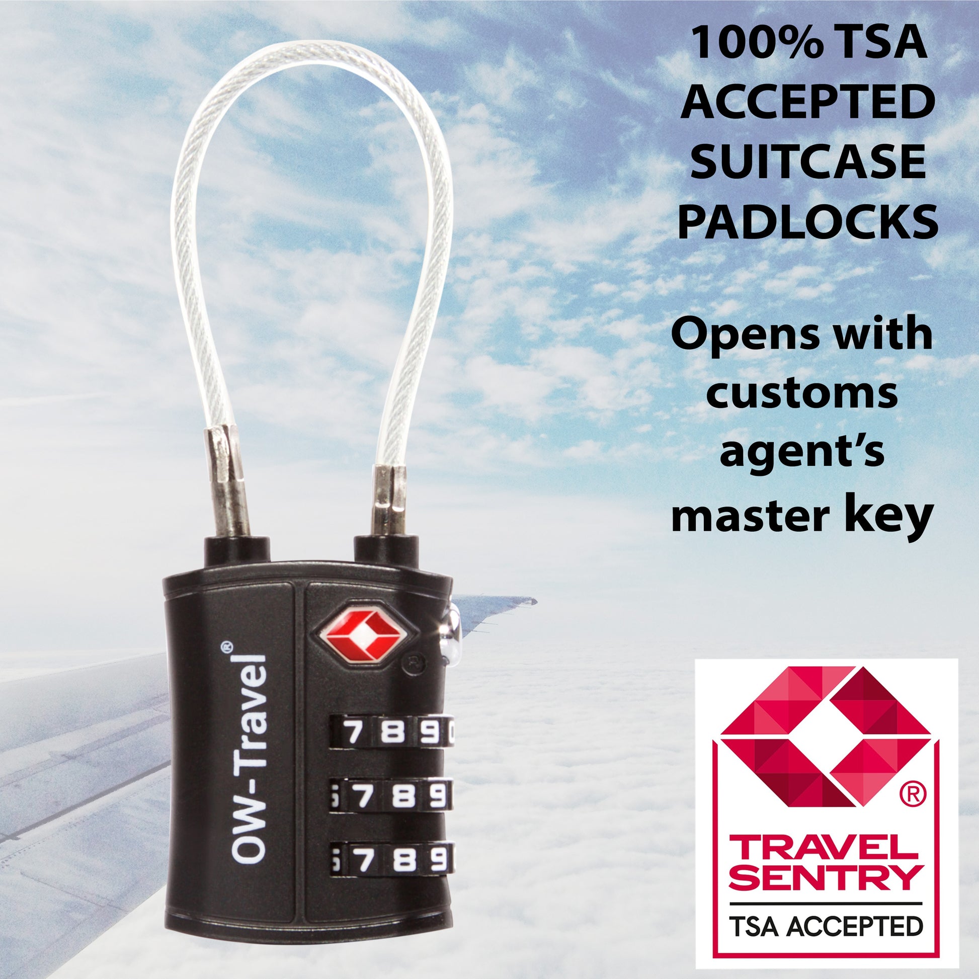【TSA Approved】 TSA Accepted, Travel Sentry Approved - TSA 007 Master Key Compliant. Fly and never arrive with luggage destroyed by inspectors. Most countries have right to open and inspect suitcases or backpacks even if that means damaging them, especially the USA. OW-Travel’s TSA combination padlock with red diamond logo ensures your travel gear can be opened by all TSA security operators.