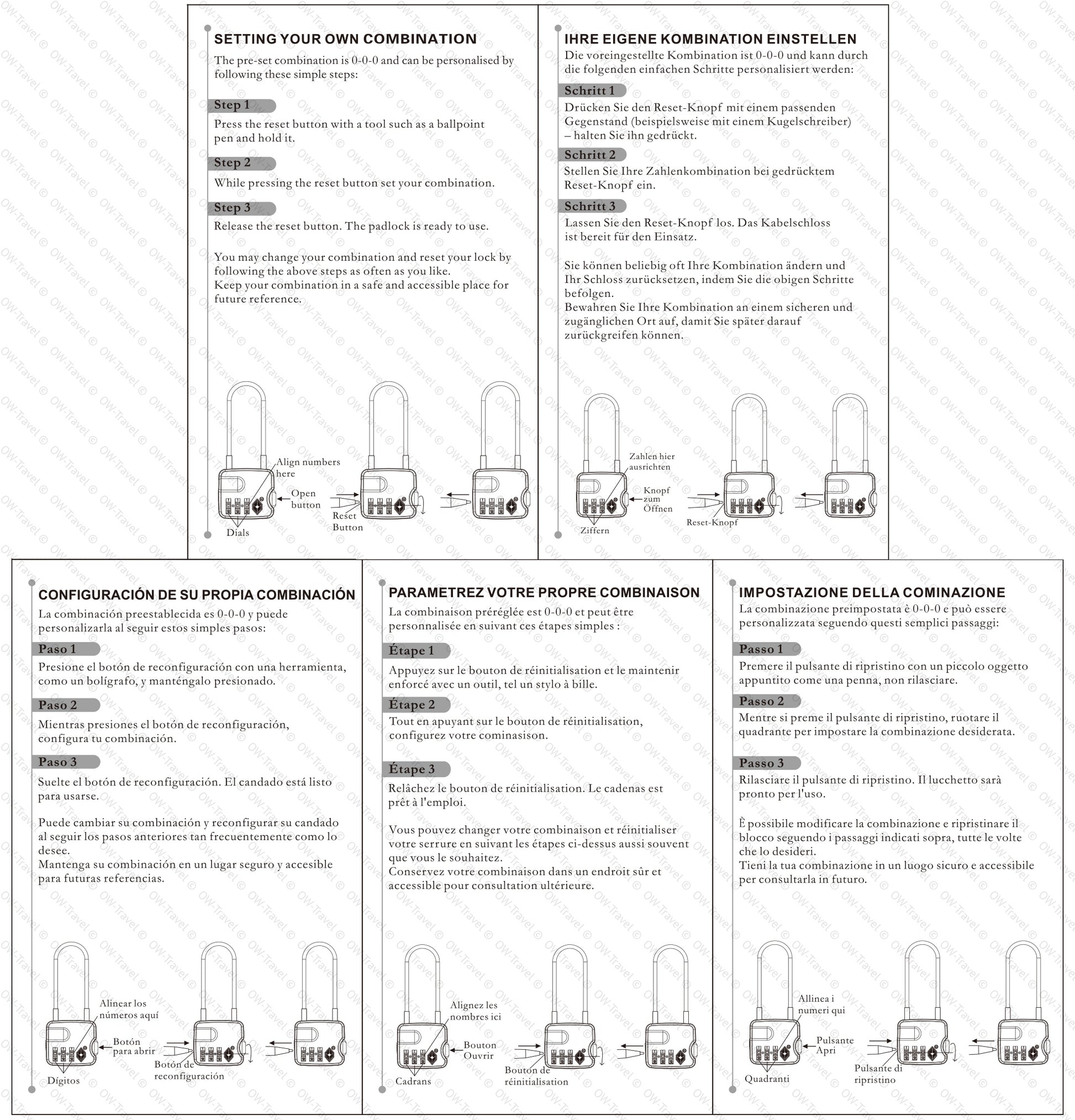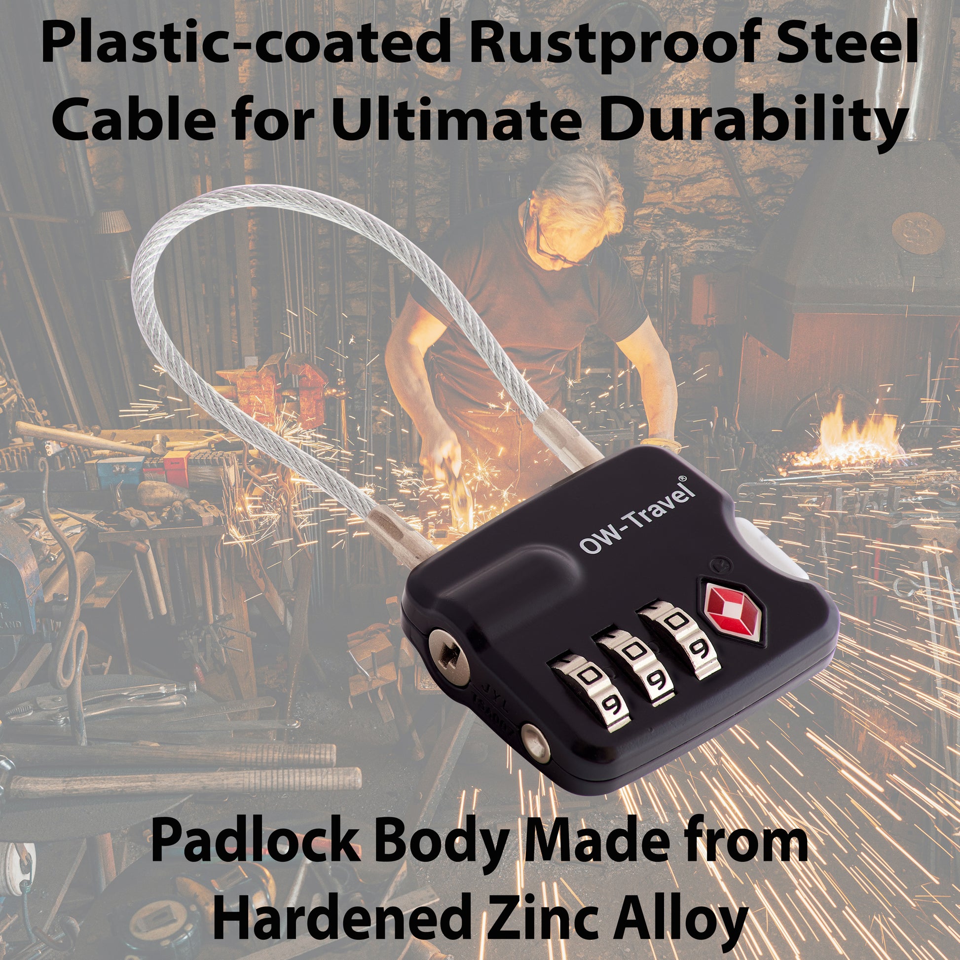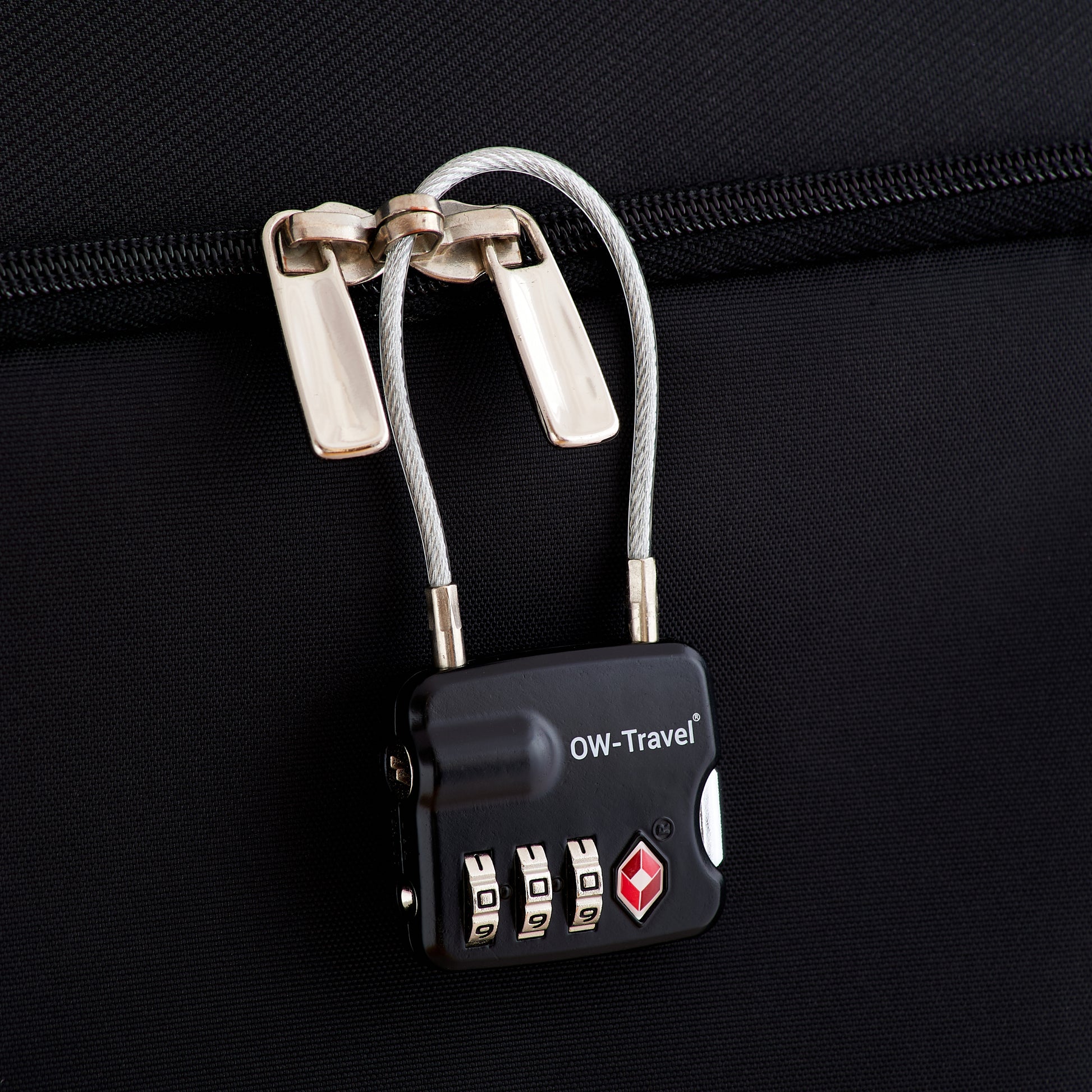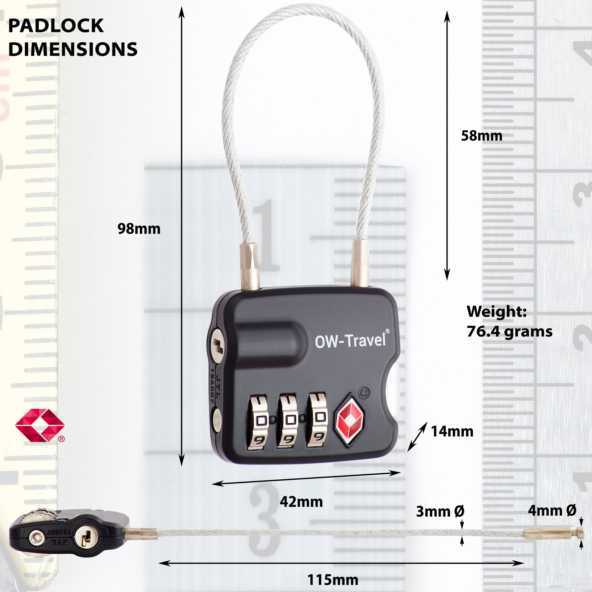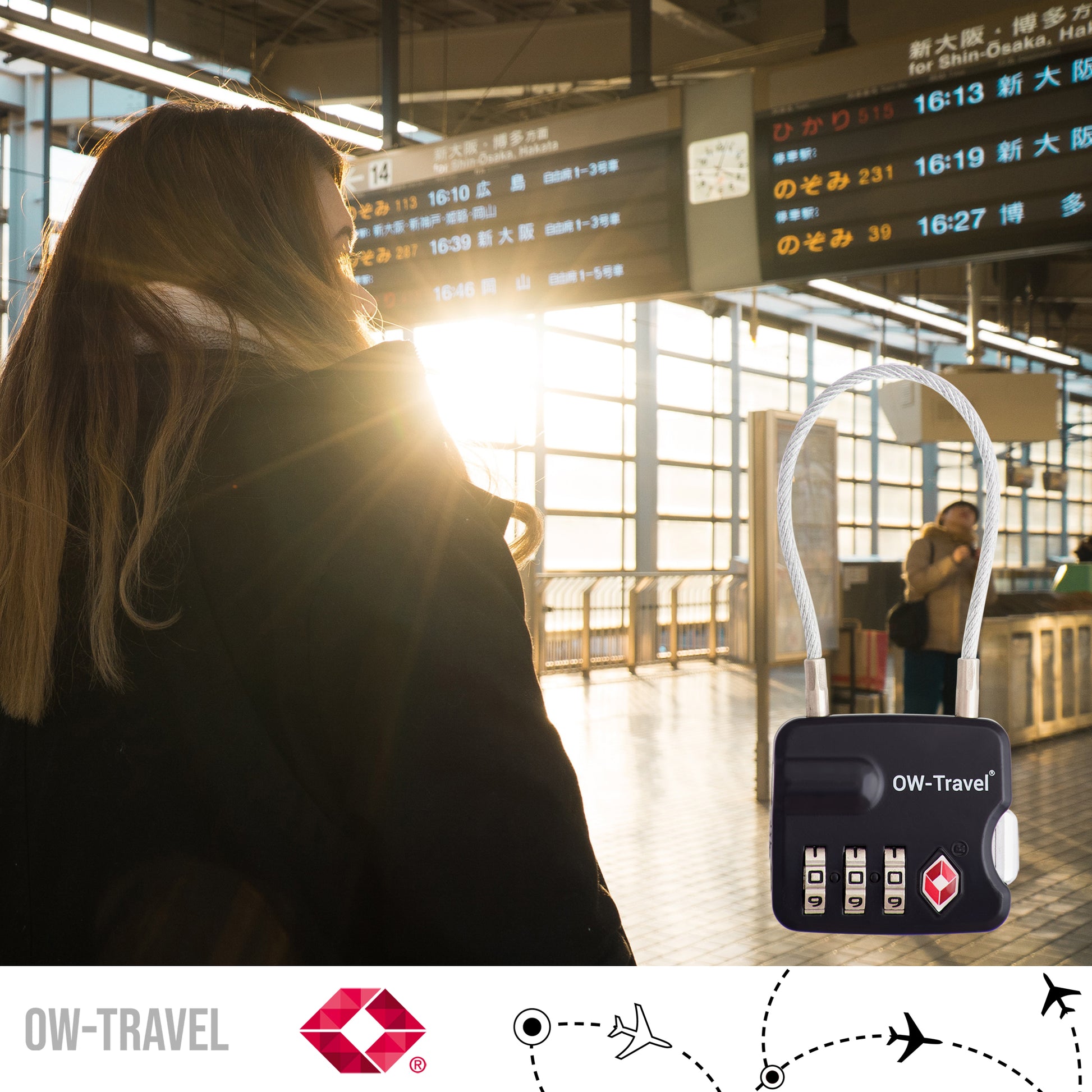 【Durable & Robust】 Secure TSA luggage locks. OW-Travel suitcase locks are crafted from the most Robust Zinc Alloy and come with a toughened plastic coated steel cable making it near impossible to cut through or crack using regular tools. The 3 dial numerical pad lock allows you to create over 1,000 combinations, so guessing the combo is almost impossible. A Padlock designed for a suitcase. Double your security system: Unlike ‘copycat’ Number Combination Padlocks.