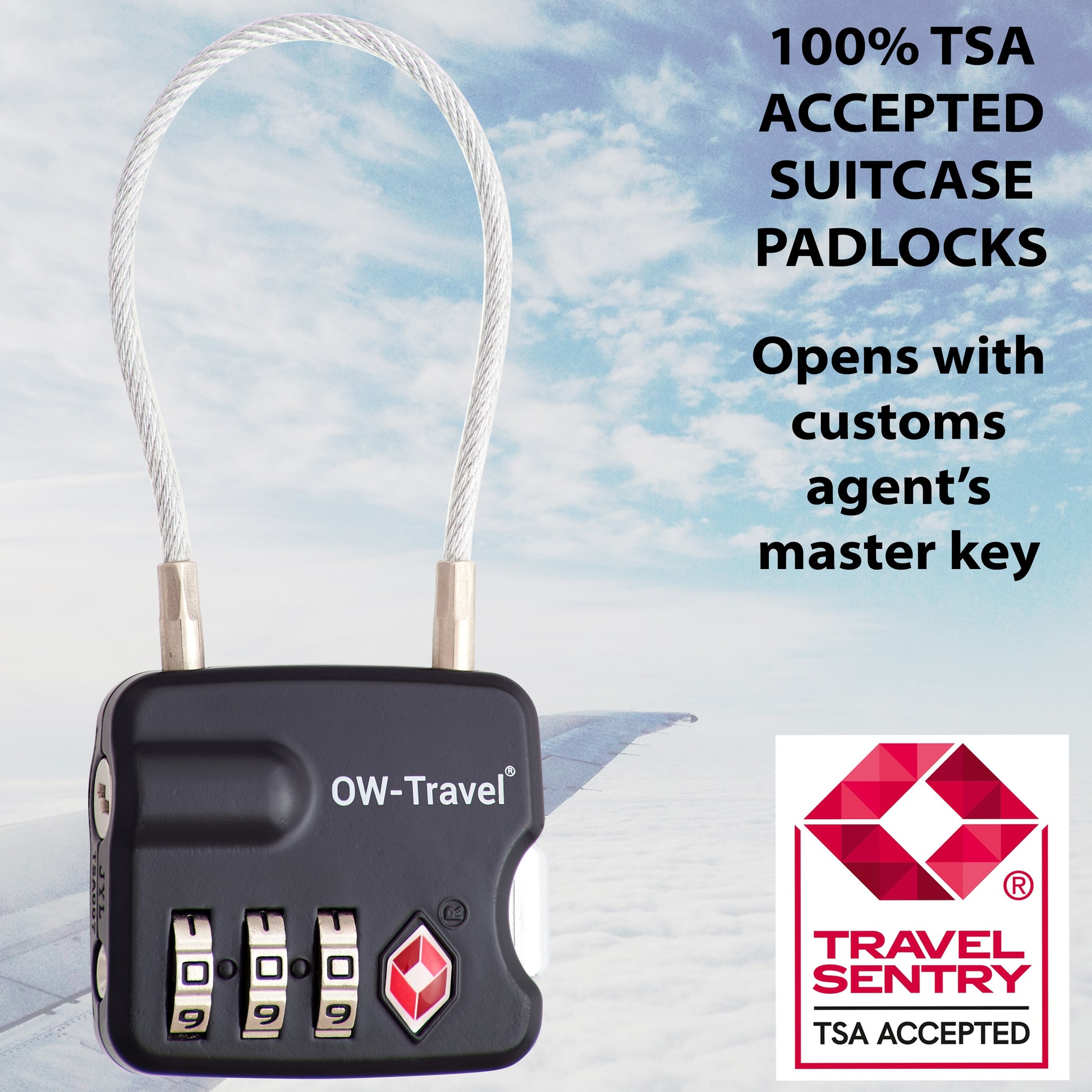【TSA Approved】 TSA Accepted, Travel Sentry Approved - TSA 007 Master Key Compliant. Fly and never arrive with luggage destroyed by inspectors. Most countries have right to open and inspect suitcases or backpacks even if that means damaging them, especially the USA. OW-Travel’s TSA combination padlock with red diamond logo ensures your travel gear can be opened by all TSA security operators.