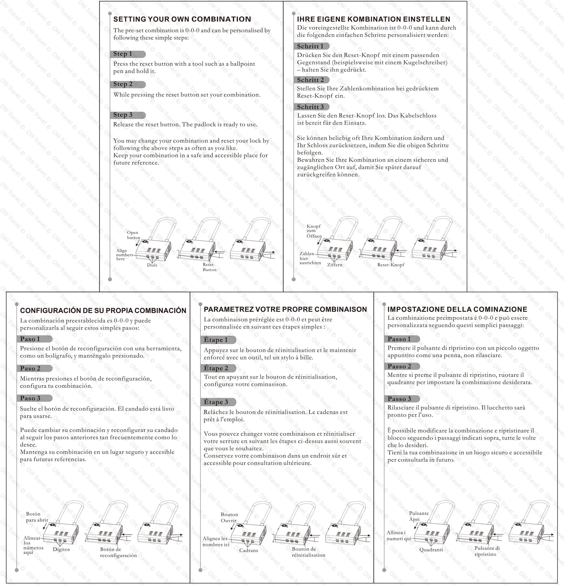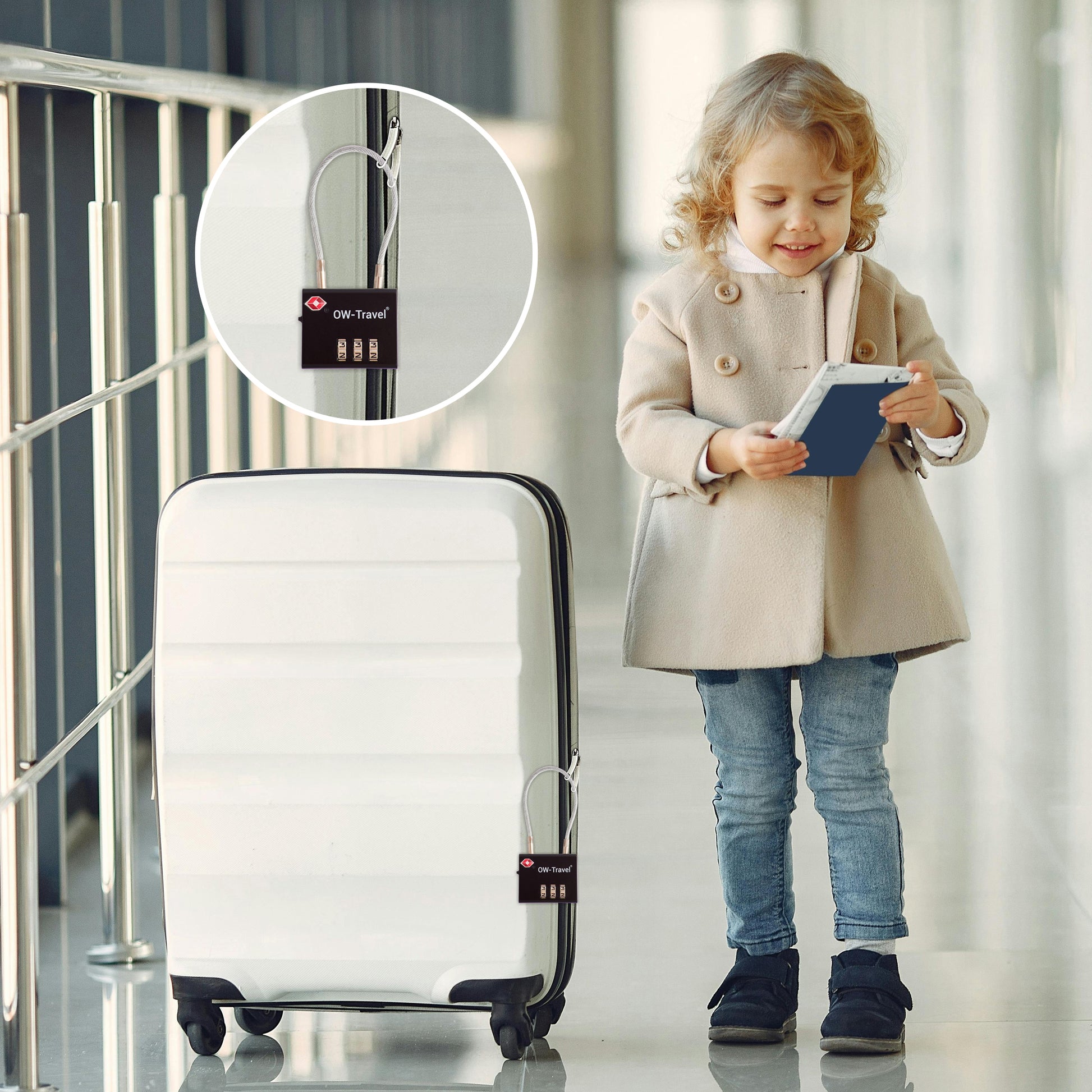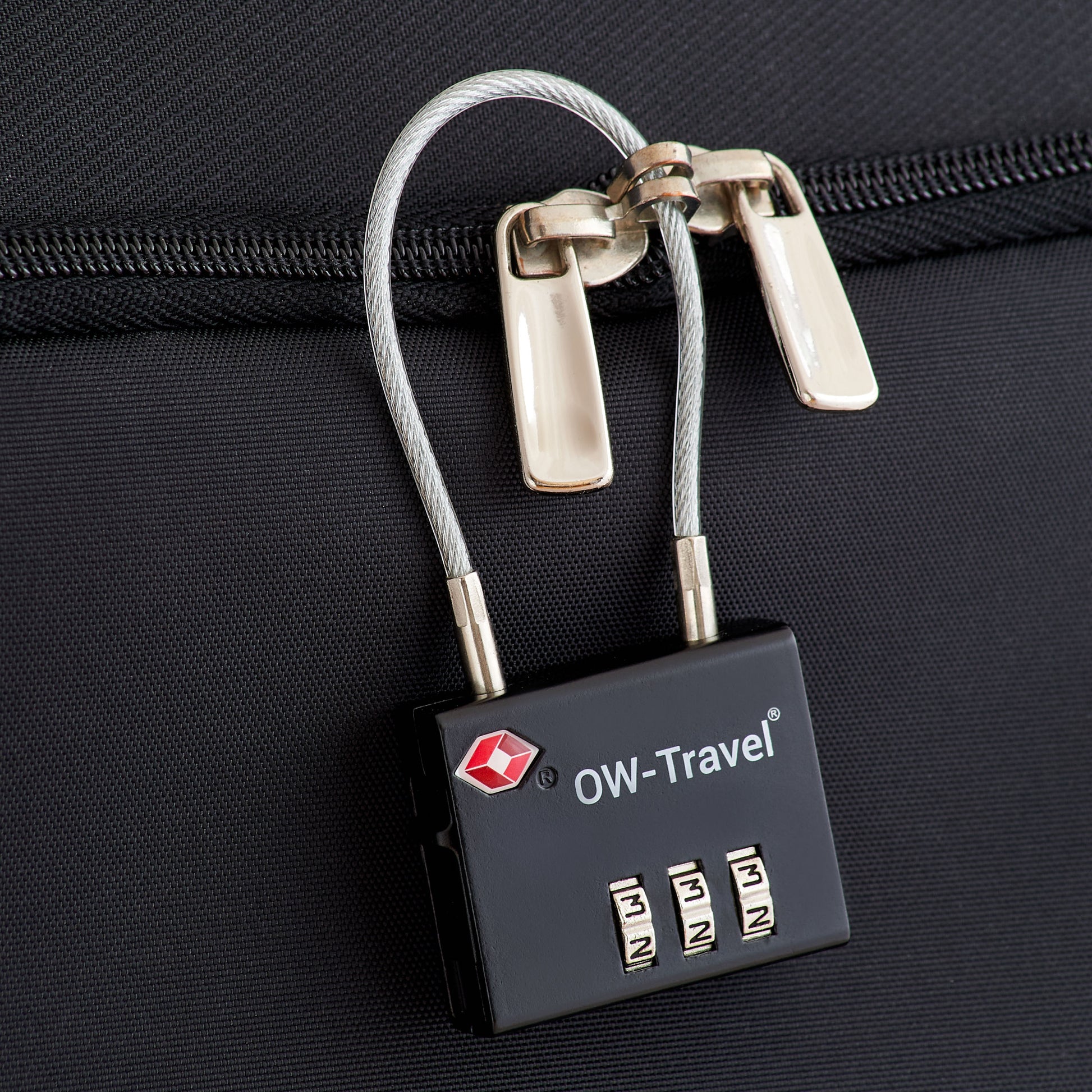 【Durable & Robust】 Secure TSA luggage locks. OW-Travel suitcase locks are crafted from the most Robust Zinc Alloy and come with a toughened plastic coated steel cable making it near impossible to cut through or crack using regular tools. The 3 dial numerical pad lock allows you to create over 1,000 combinations, so guessing the combo is almost impossible. A Padlock designed for a suitcase. Double your security system: Unlike ‘copycat’ Number Combination Padlocks.