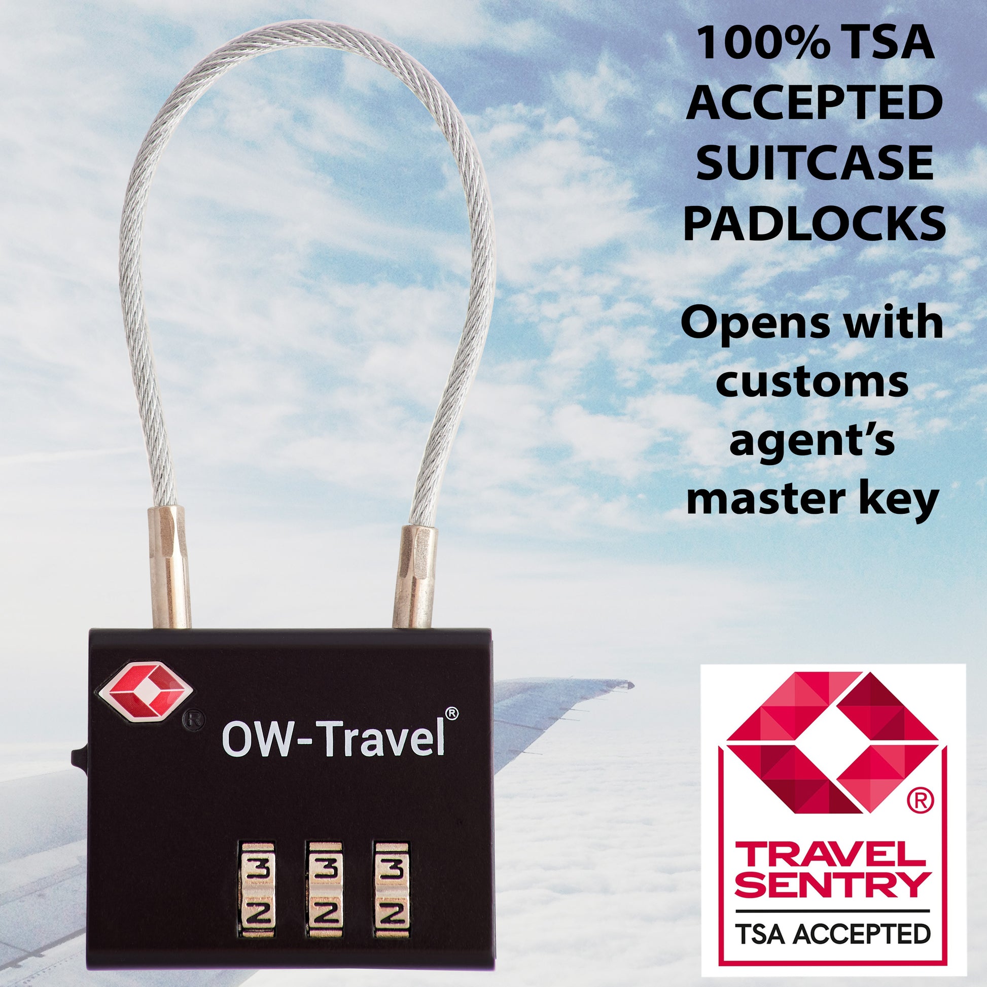 【TSA Approved】 TSA Accepted, Travel Sentry Approved - TSA 007 Master Key Compliant. Fly and never arrive with luggage destroyed by inspectors. Most countries have right to open and inspect suitcases or backpacks even if that means damaging them, especially the USA. OW-Travel’s TSA combination padlock with red diamond logo ensures your travel gear can be opened by all TSA security operators.
