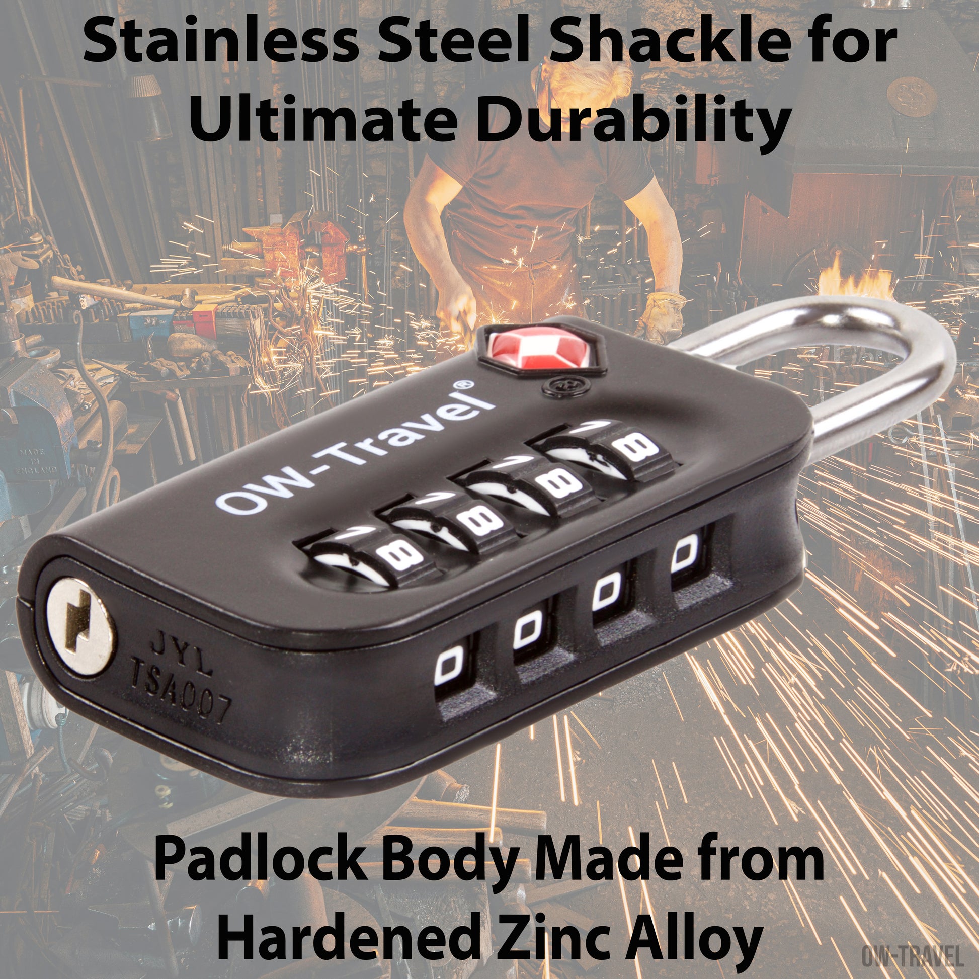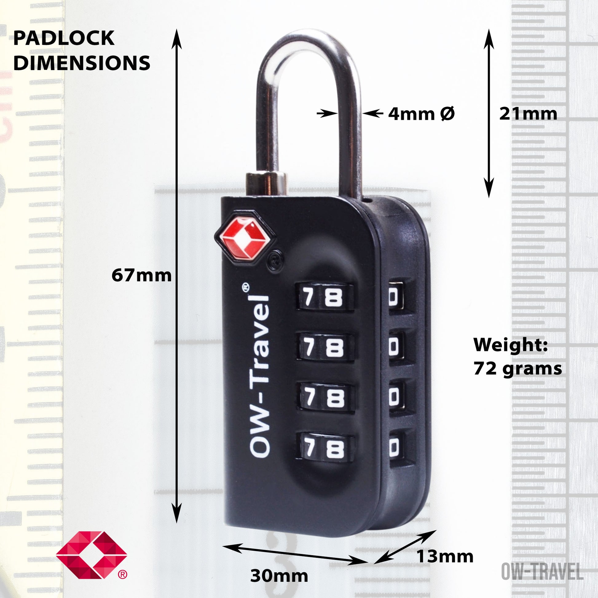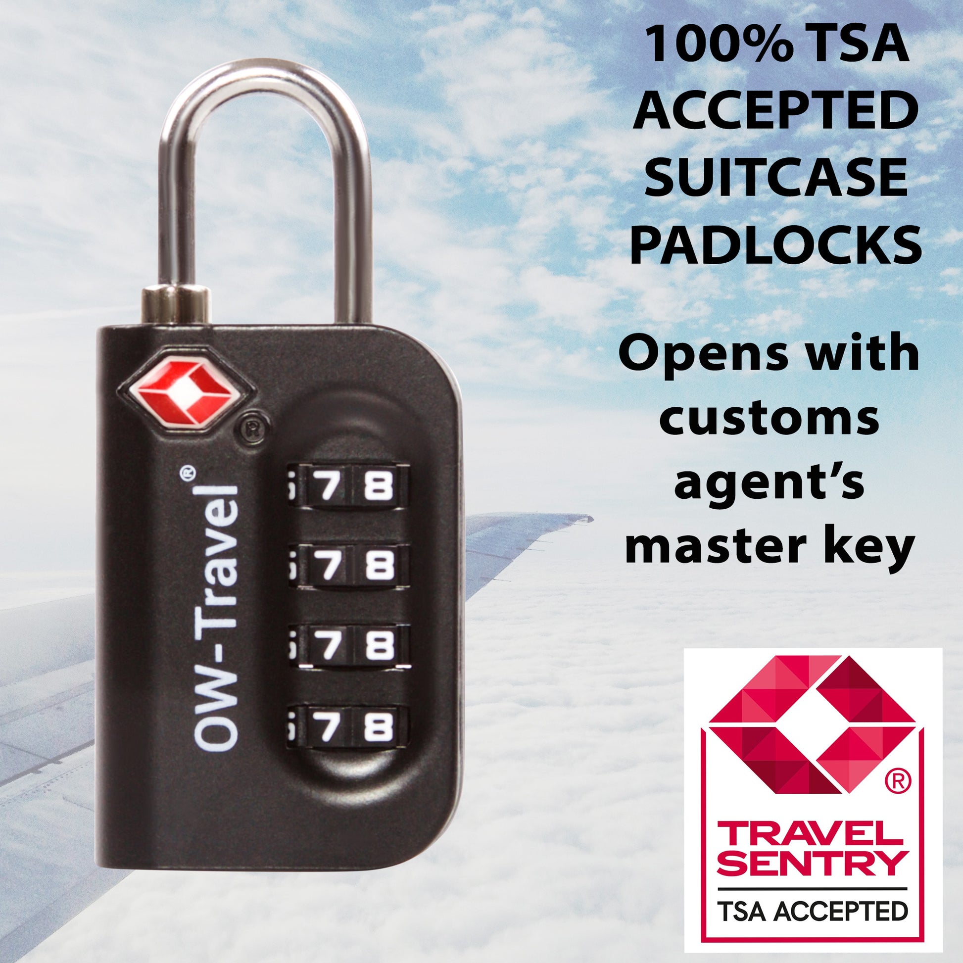 【TSA Approved】TSA Accepted, Travel Sentry Approved - TSA 007 Master Key Compliant. Fly and never arrive with luggage destroyed by inspectors. Most countries have the right to open and inspect suitcases or backpacks even if that means damaging them, especially the USA. OW-Travel’s TSA combination padlock with red diamond logo ensures your travel gear can be opened by all TSA security operators.
