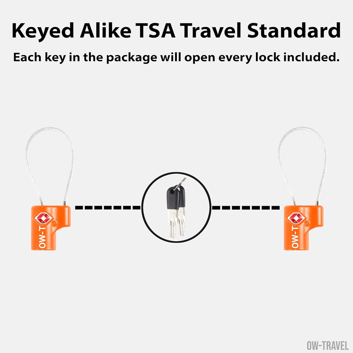【Durable & Robust】 OW-Travel padlocks for luggage are crafted from Robust Zinc Alloy with a toughened plastic coated steel cable making it near impossible to cut through using regular tools. The KEYED ALIKE case locks for luggage allow your brain to relax, not a number in sight! Bag locks for travelling designed for a suitcase. Double your security system with TSA approved locks: Unlike ‘copycat’ suitcase padlocks that leave you with a false sense of security.