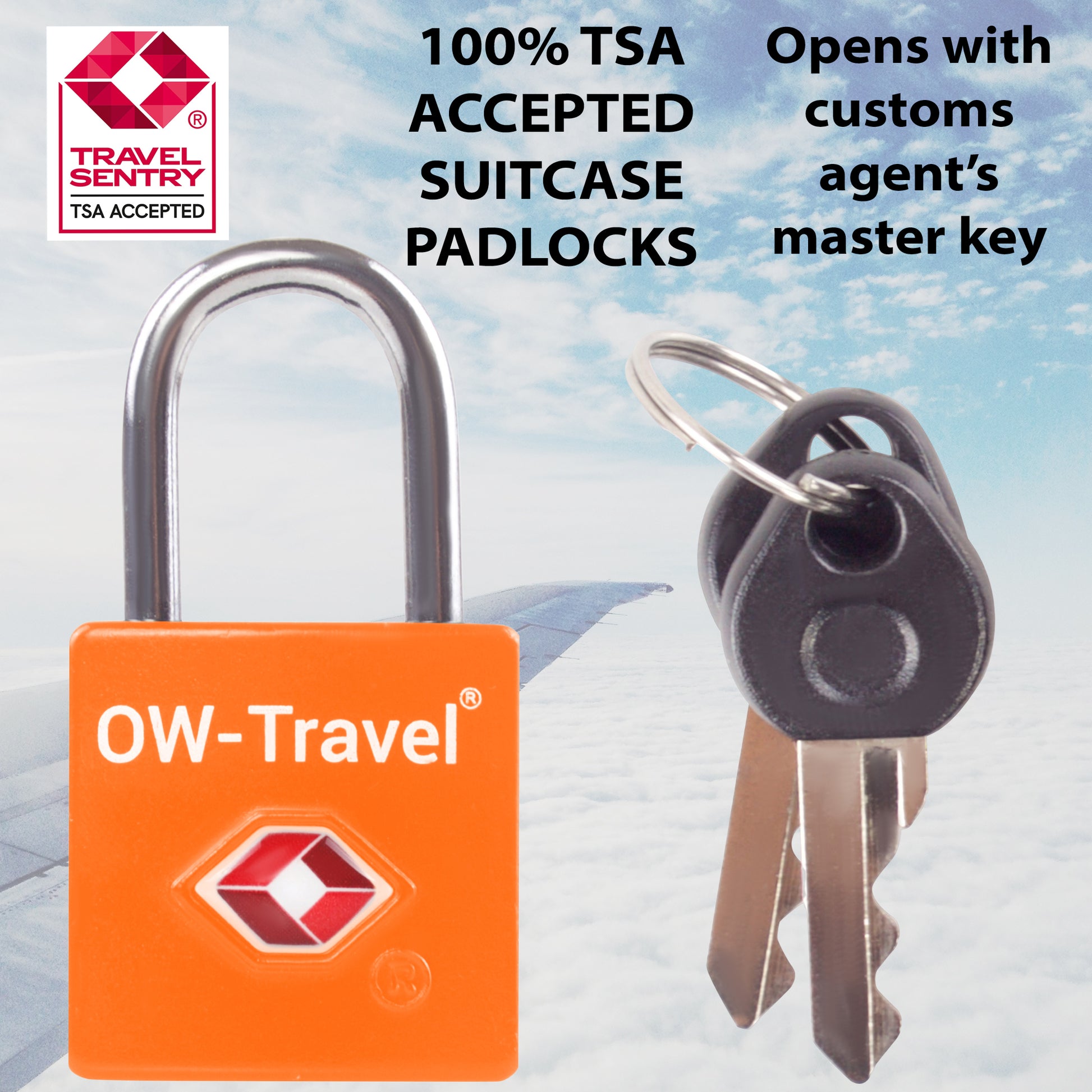 【TSA Approved】 TSA Accepted, Travel Sentry Approved - Master Key Compliant. Fly and never arrive with luggage destroyed by inspectors. Most countries have right to open and inspect suitcases or backpacks even if that means damaging them, especially the USA. OW-Travel’s TSA keyed padlock with red diamond logo ensures your travel gear can be opened by all TSA security operators.