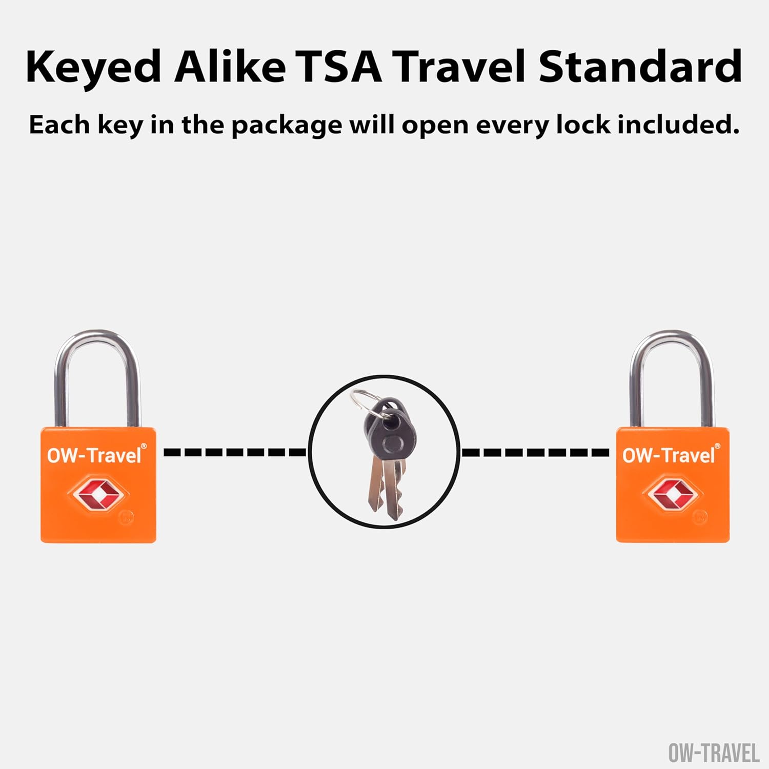 【Durable & Robust】 Secure TSA luggage locks. OW-Travel suitcase locks are crafted from the most Robust Zinc Alloy making it near impossible to cut through or crack using regular tools. The KEYED ALIKE case locks for luggage allow your brain to relax, not a number in sight! A Padlock designed for a suitcase.