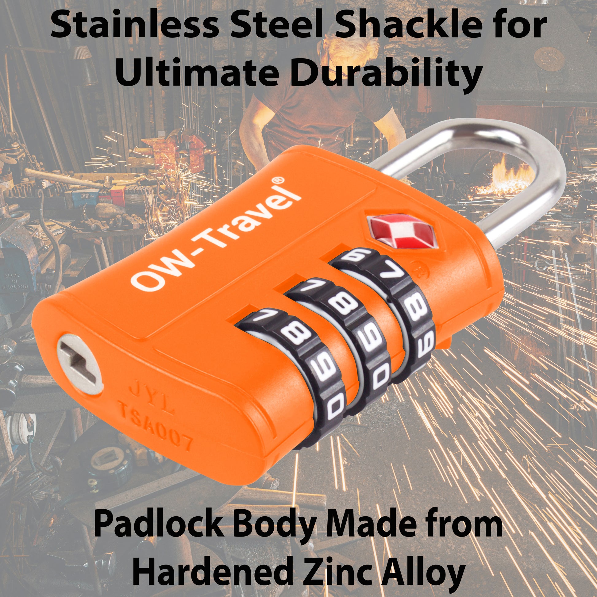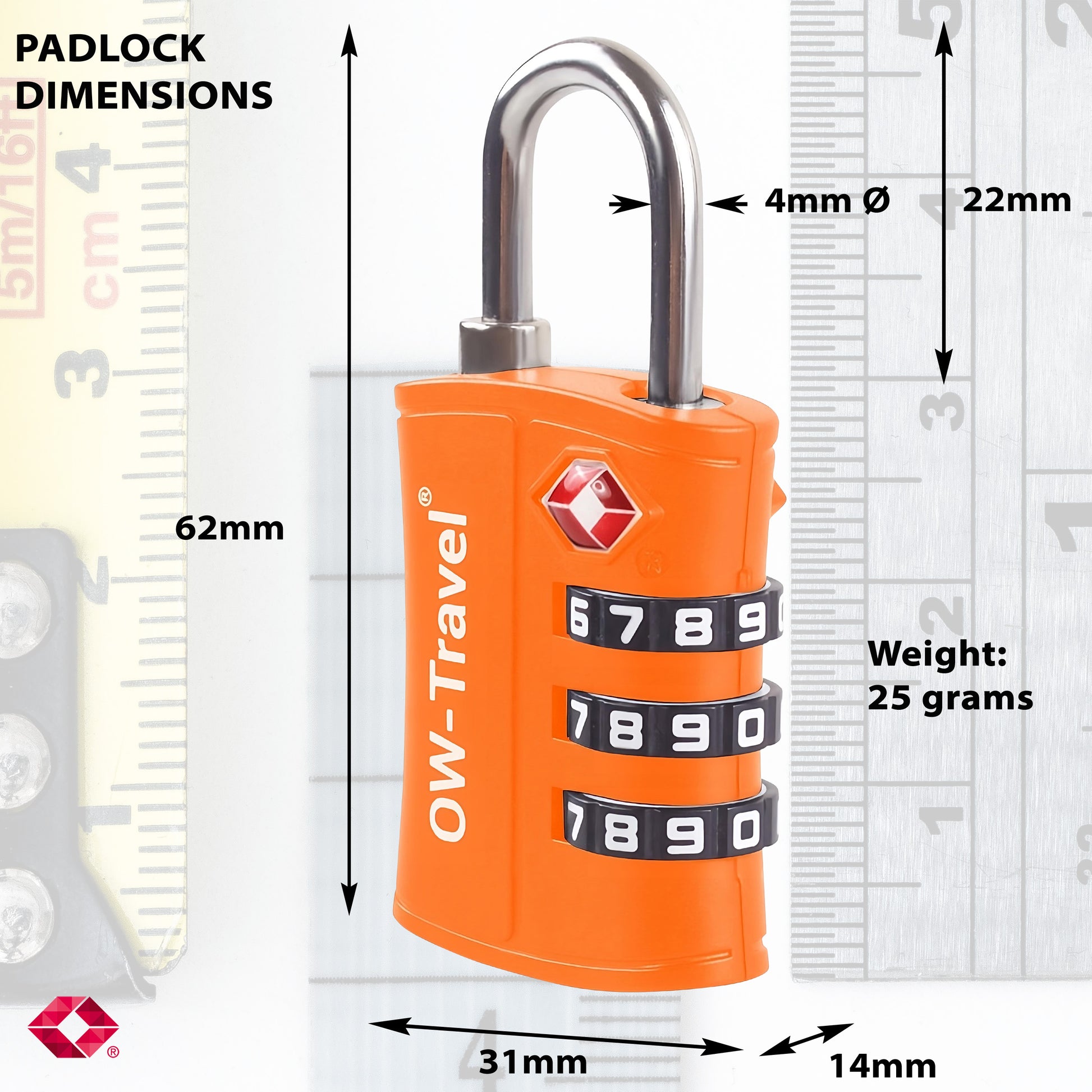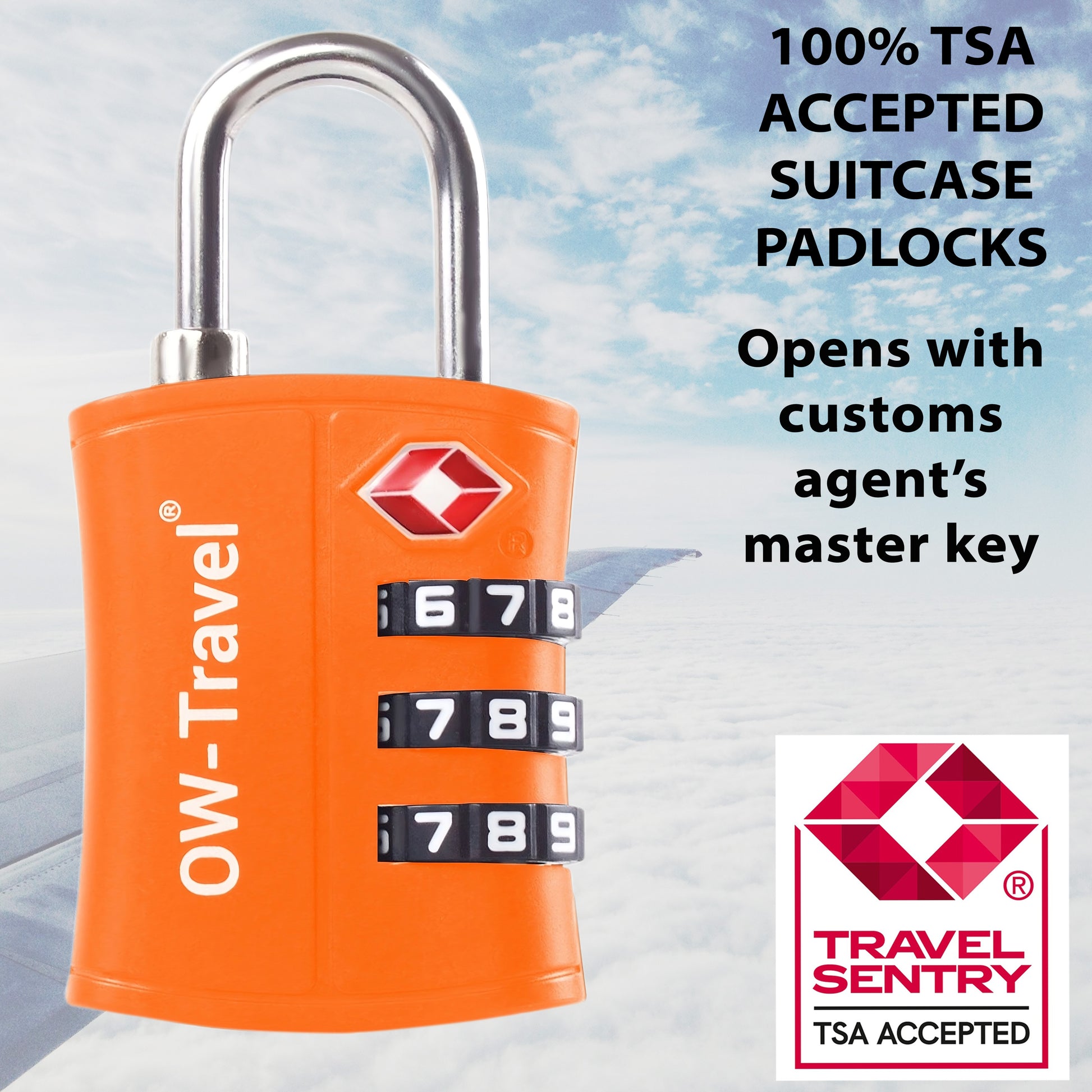 【TSA Approved】TSA Accepted, Travel Sentry Approved - TSA 007 Master Key Compliant. Fly and never arrive with luggage destroyed by inspectors. Most countries have the right to open and inspect suitcases or backpacks even if that means damaging them, especially the USA. OW-Travel’s TSA combination padlock with red diamond logo ensures your travel gear can be opened by all TSA security operators.