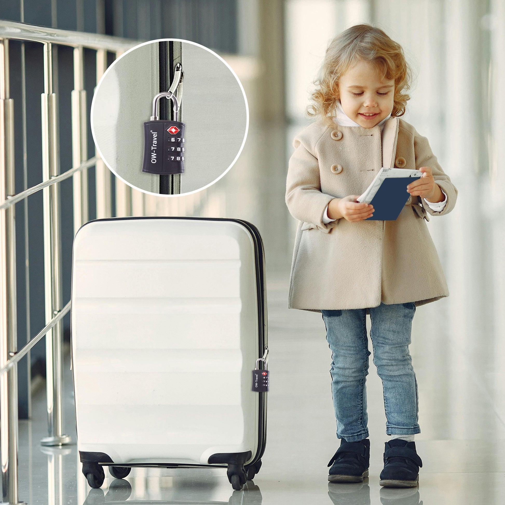 【Durable & Robust】Secure TSA luggage locks. OW-Travel suitcase locks are engineered from lightweight super tough ABS making it near impossible to cut through or crack using regular tools. Plus the 3 dial numerical pad lock allows you to create over 1,000 combinations, so guessing your combo is almost impossible. A Padlock designed for a suitcase. Double your security system with this combination lock for suitcases.