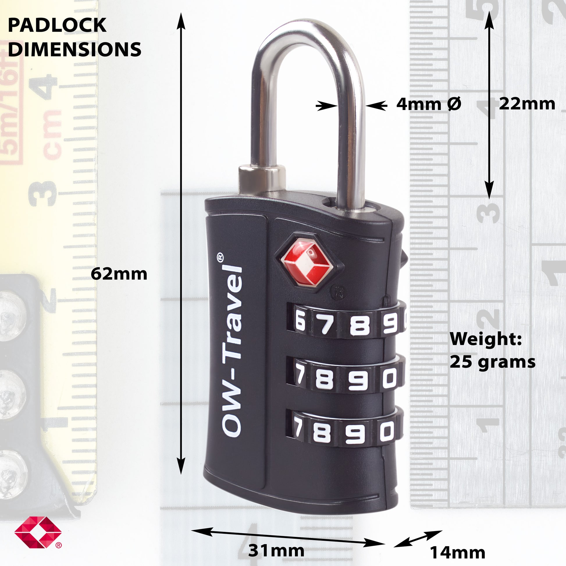 【TSA Approved】TSA Accepted, Travel Sentry Approved - TSA 007 Master Key Compliant. Fly and never arrive with luggage destroyed by inspectors. Most countries have the right to open and inspect suitcases or backpacks even if that means damaging them, especially the USA. OW-Travel’s TSA combination padlock with red diamond logo ensures your travel gear can be opened by all TSA security operators.