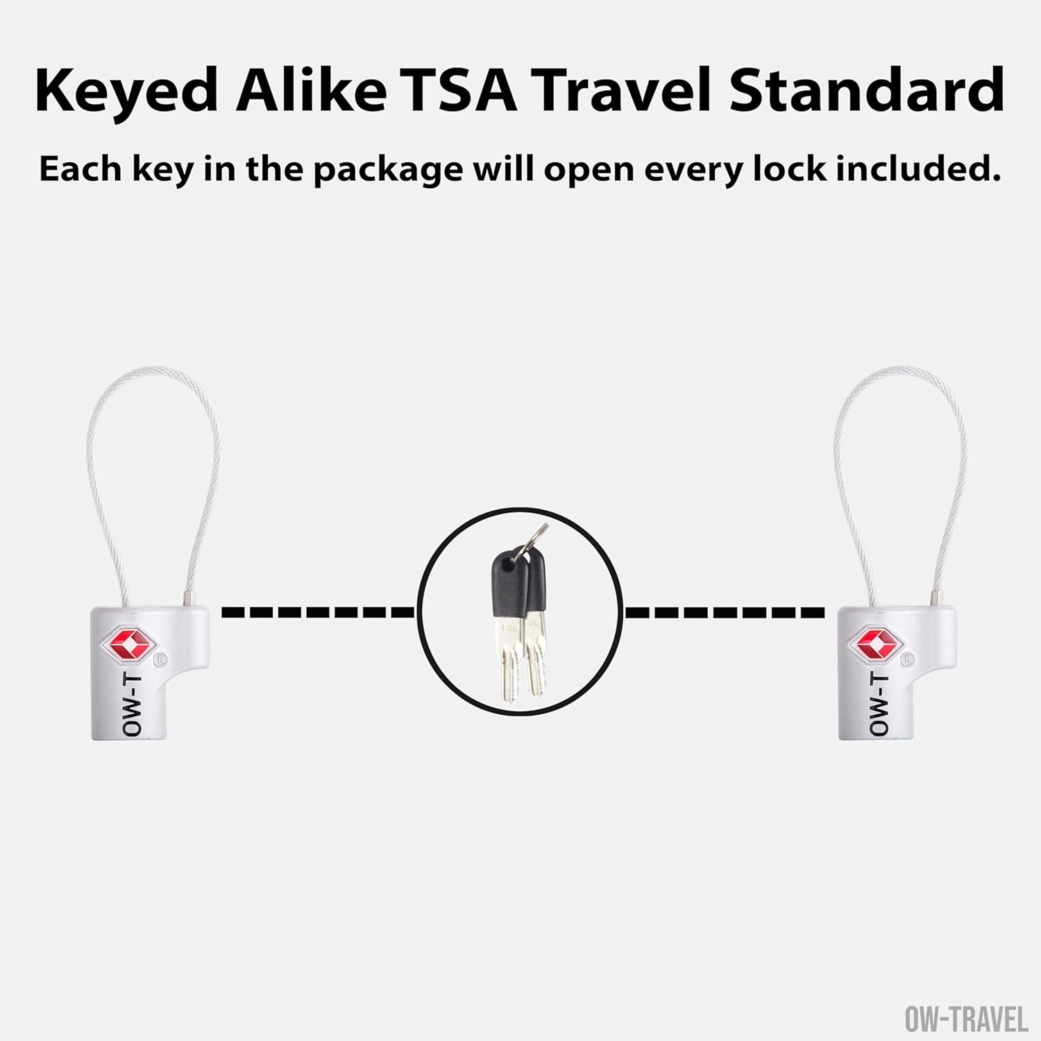 【Durable & Robust】 OW-Travel padlocks for luggage are crafted from Robust Zinc Alloy with a toughened plastic coated steel cable making it near impossible to cut through using regular tools. The KEYED ALIKE case locks for luggage allow your brain to relax, not a number in sight! Bag locks for travelling designed for a suitcase. Double your security system with TSA approved locks: Unlike ‘copycat’ suitcase padlocks that leave you with a false sense of security.