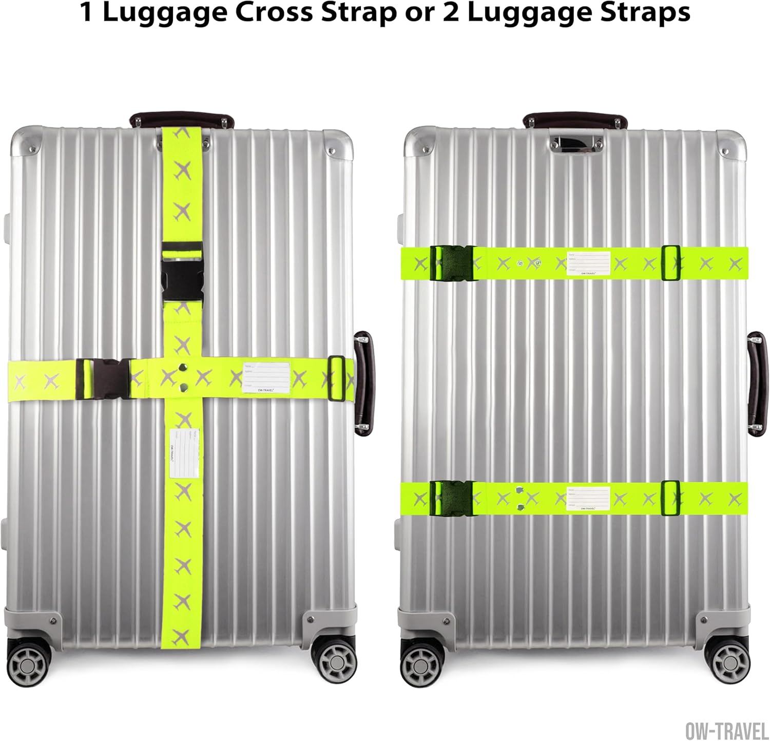 Yellow luggage cross strap suitcase belts with baggage label case tag